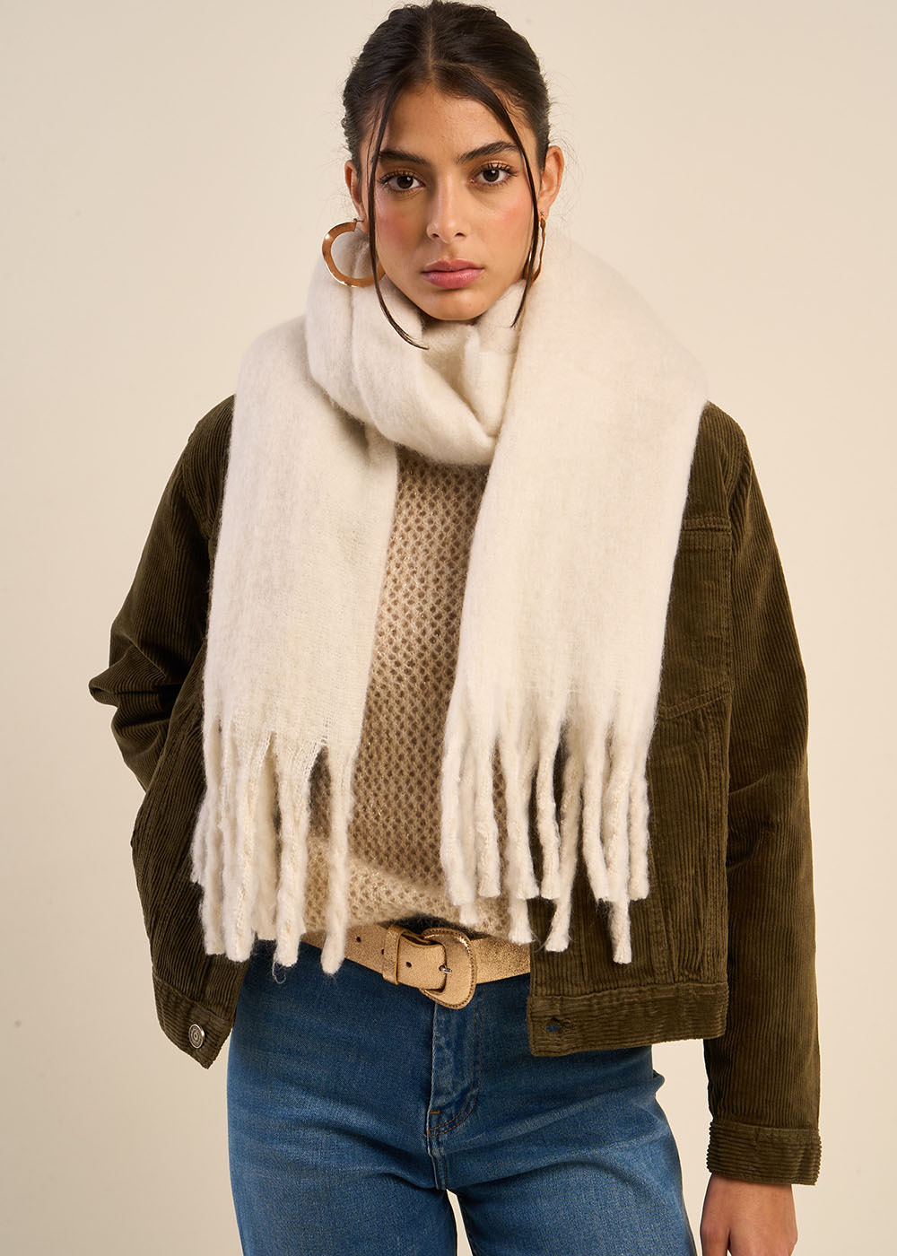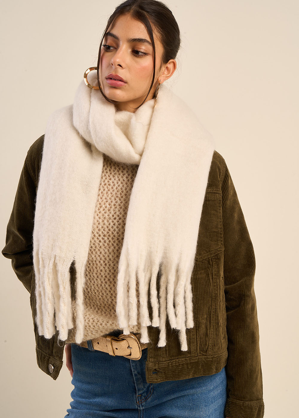 L’écharpe ELAINE à franges, ajoute une touche de sophistication et de modernité à votre tenue. Ses couleurs vibrantes et ses franges élégantes en font un accessoire chic et tendance, parfait pour rehausser vos looks tout en vous offrant chaleur et confort.