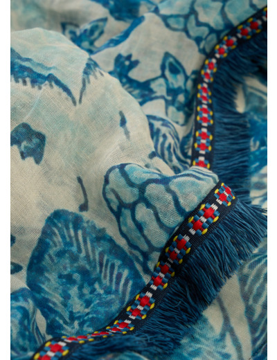 Le foulard imprimé ELFIE, avec ses magnifiques franges tout autour, ajoute une touche de charme et d'élégance à votre tenue. Avec ses couleurs subtiles et son design raffiné, il est l'accessoire parfait pour rehausser votre look.