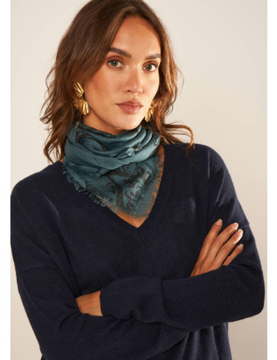 Foulard carré en laine et soie
