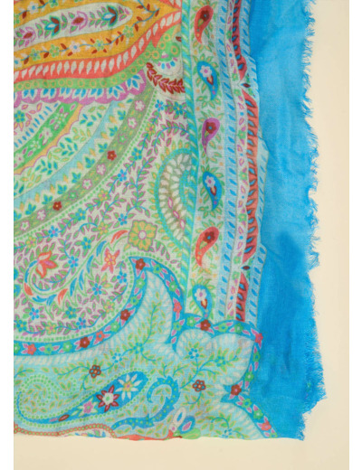 Le foulard imprimé floral ELIENNE, aux délicates nuances de vert et de bleu, insuffle une note de fraîcheur et de sophistication à votre tenue. Son design élégant et sa texture légère en font un accessoire polyvalent, parfait pour rehausser vos looks avec une touche colorée et raffinée.