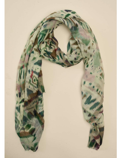 Le foulard imprimé ERMINA présente un mélange harmonieux de nuances de vert qui se fondent délicatement. Il apporte une touche de raffinement et de subtilité à votre tenue.