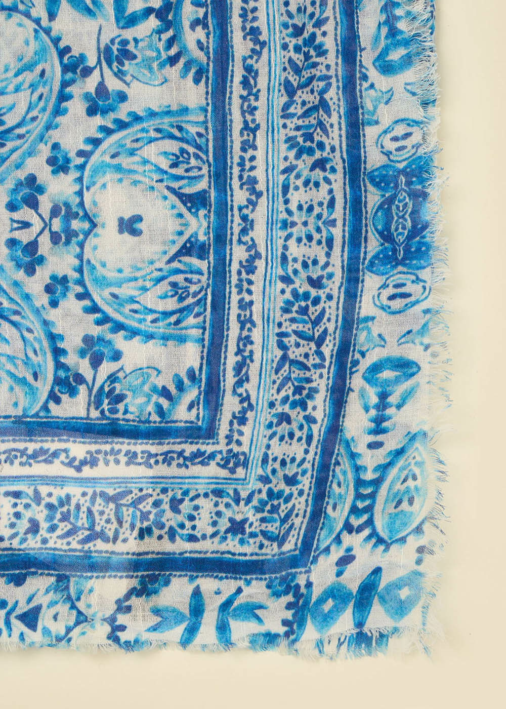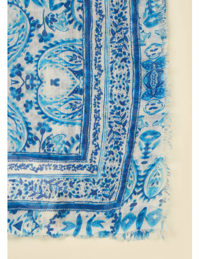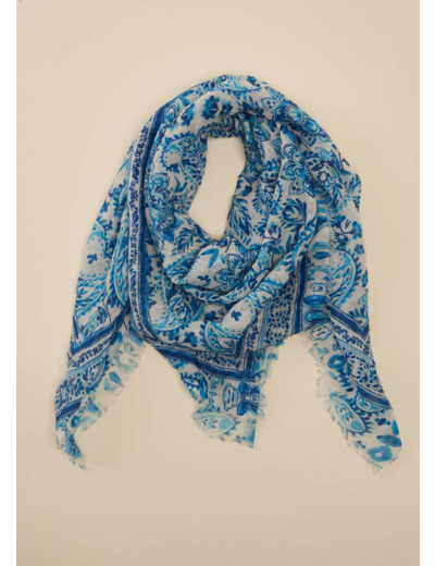 Le foulard imprimé ENIOLA, avec ses nuances de bleu délicatement fusionnées, insuffle une brise de fraîcheur et une pointe d'élégance à votre tenue.