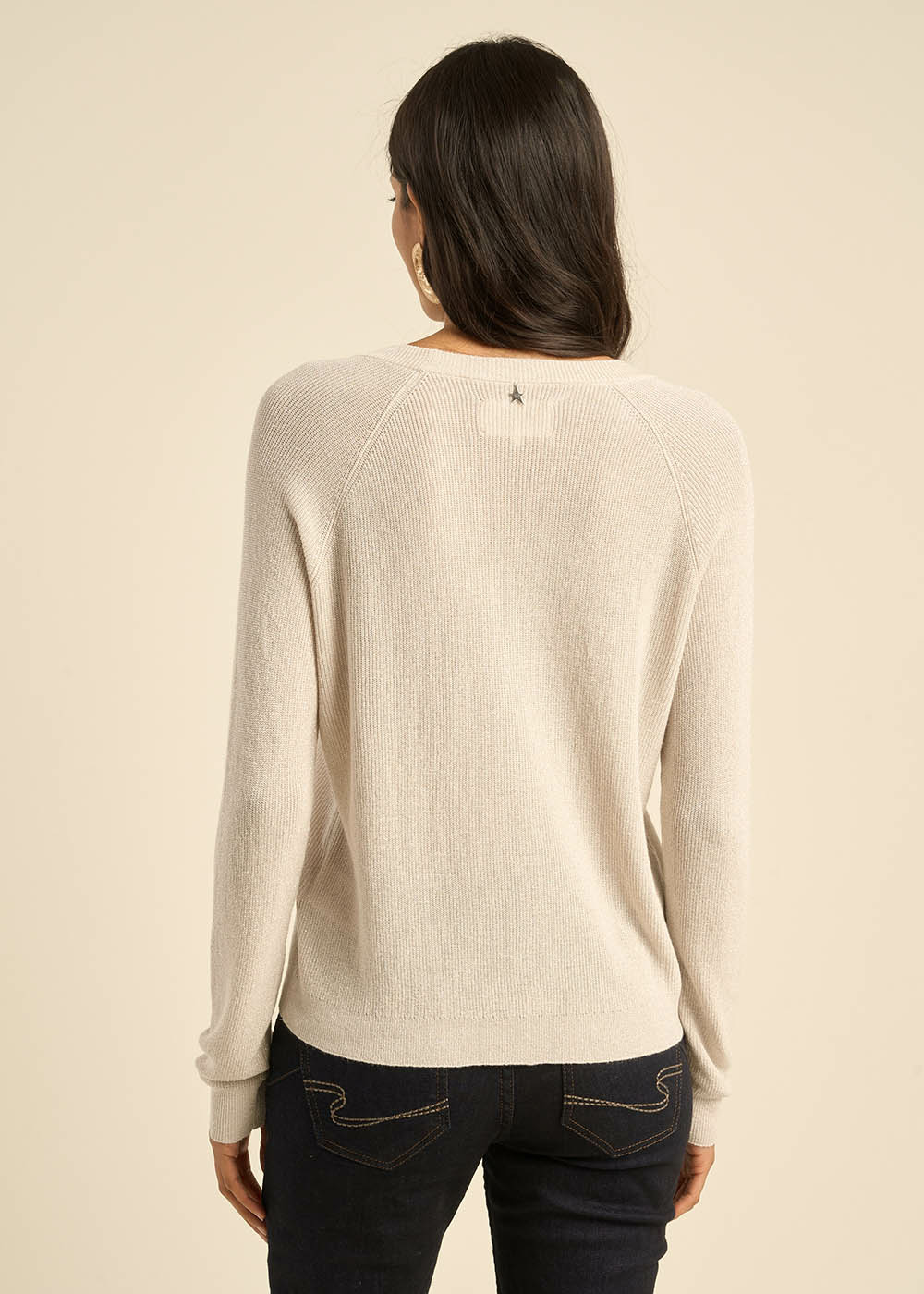 Le cardigan GILY, confectionné en maille côtelée avec un fil lurex, est un incontournable de votre garde-robe. Avec ses manches longues et son col en V, il offre une combinaison parfaite d'élégance et de confort.