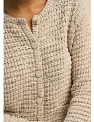Découvrez le gilet GILARYO, une pièce à la fois chic et féminine qui saura sublimer votre style. Confectionné dans une maille à l’aspect crochet, il offre une allure élégante et contemporaine. Son col rond et sa coupe droite assurent un tombé parfait, tandis que les boutons bijoux apportent une touche raffinée. Intégrant une fibre métallisée subtile, ce gilet capture délicatement la lumière, ajoutant une pointe d’éclat à vos tenues.
