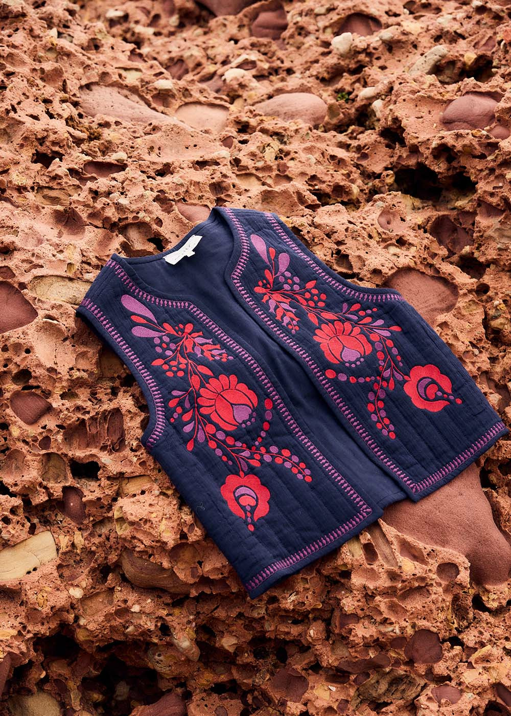 La gilet sans manches GABBI, ornée de détails de broderies florales à l'avant et dotée d'une encolure arrondie, est un choix parfait pour les superpositions, ajoutant une touche de féminité et de style à votre tenue.