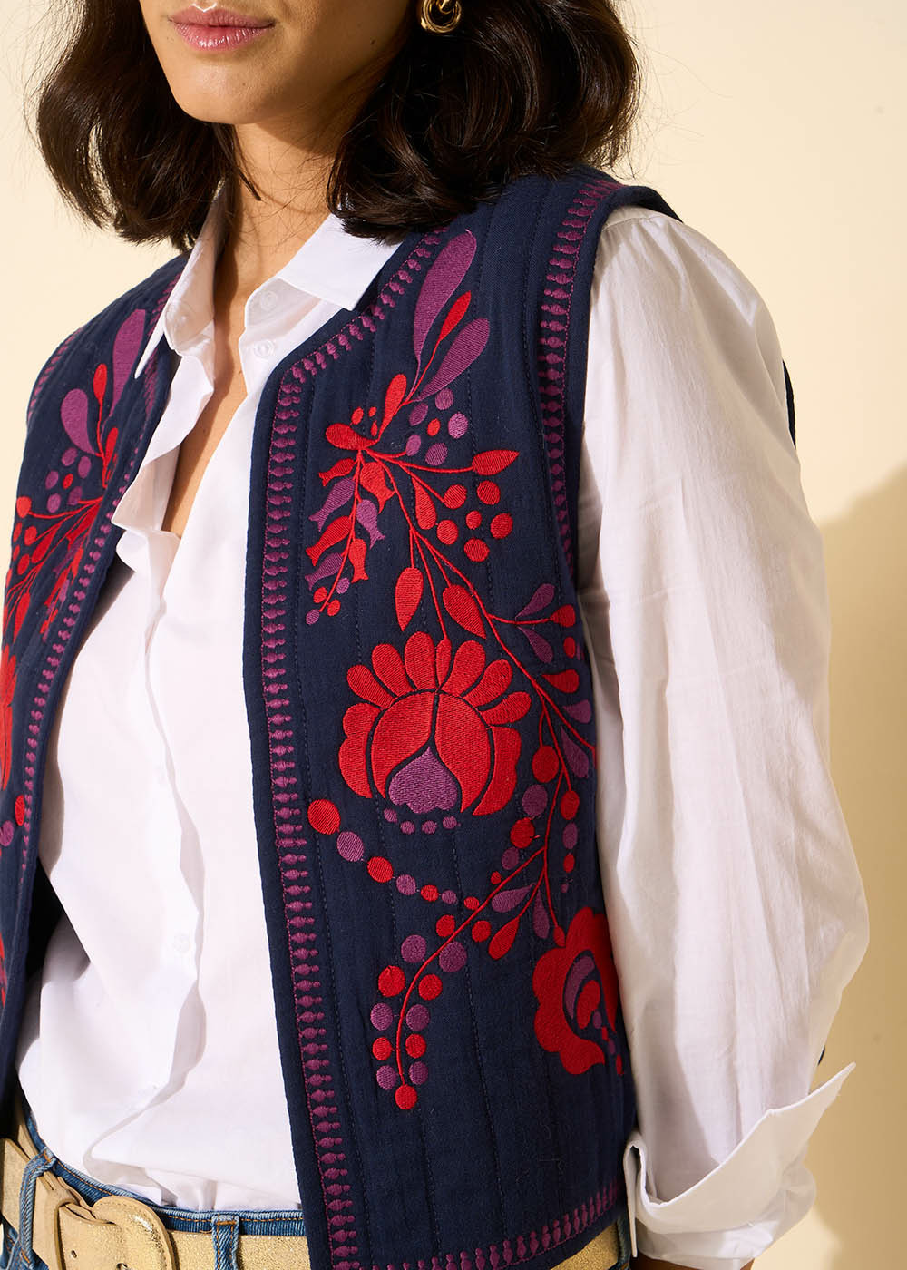 Gilet Sans Manches Détails Broderies