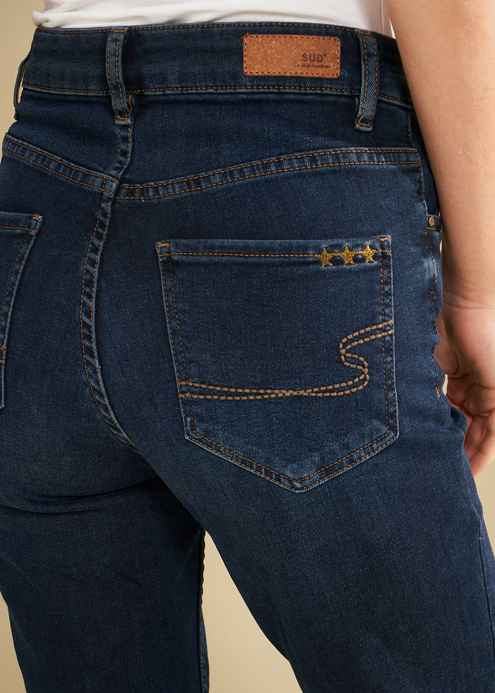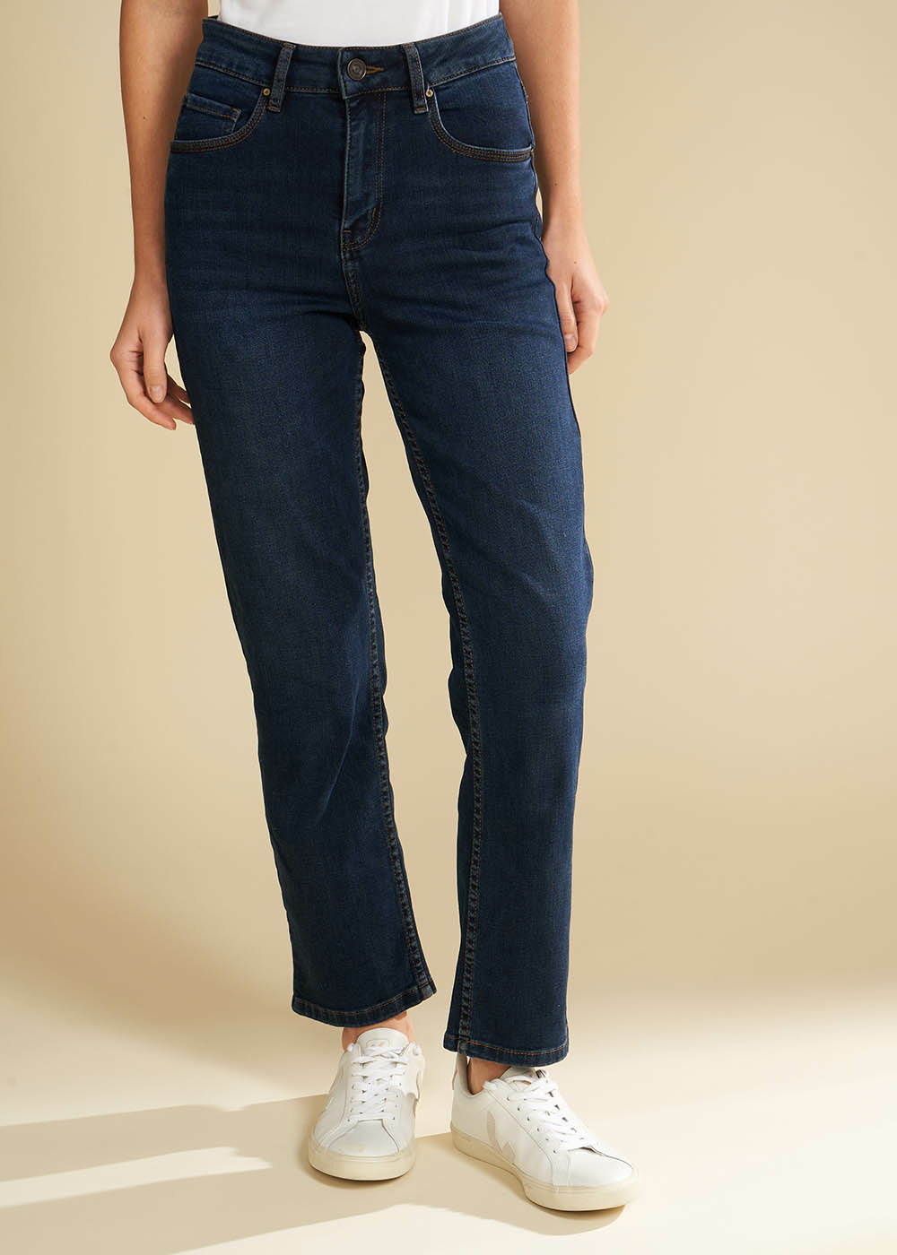 Le jean DEBBY adopte une coupe droite simple à porter. Il détient une taille haute et des poches plaquées.