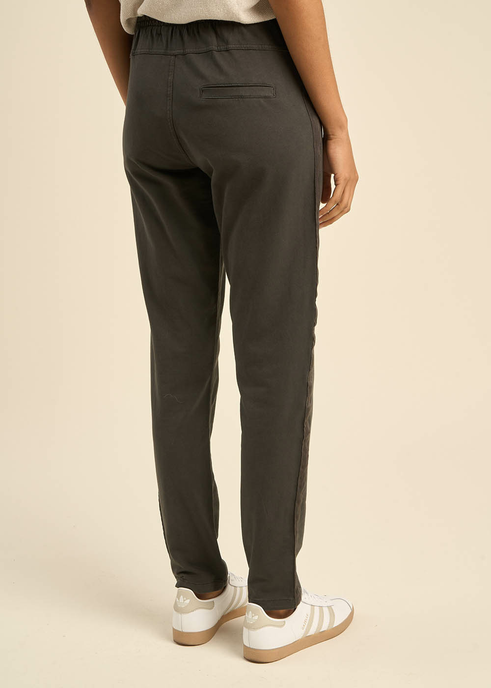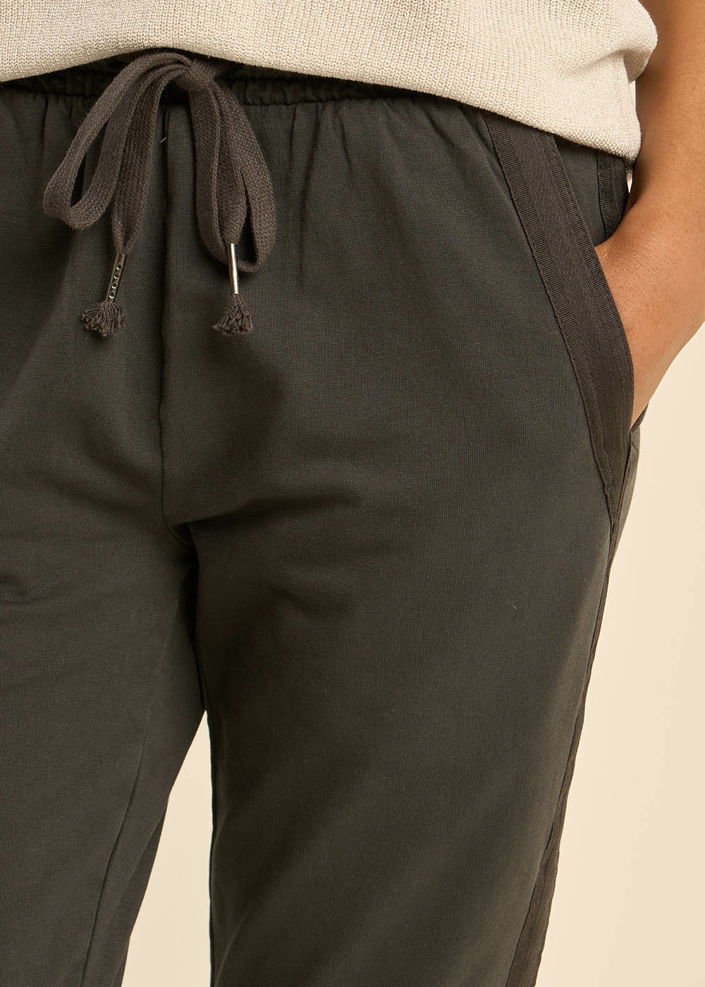 Le jogging POERY présente une taille élastiquée avec un cordon de serrage pour un ajustement confortable. Il dispose de poches italiennes à l'avant agrémentées de biais en satin ton sur ton le long de la jambe. Associez-le à un tee-shirt blanc pour créer un ensemble à la fois élégant et décontracté.