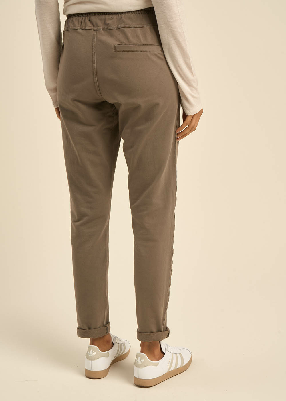 Le jogging POERY présente une taille élastiquée avec un cordon de serrage pour un ajustement confortable. Il dispose de poches italiennes à l'avant agrémentées de biais en satin ton sur ton le long de la jambe. Associez-le à un tee-shirt blanc pour créer un ensemble à la fois élégant et décontracté.