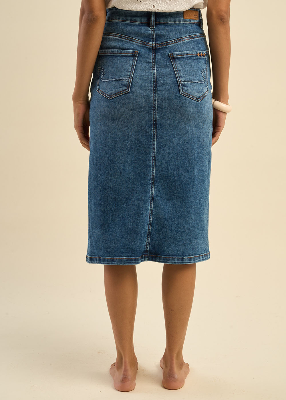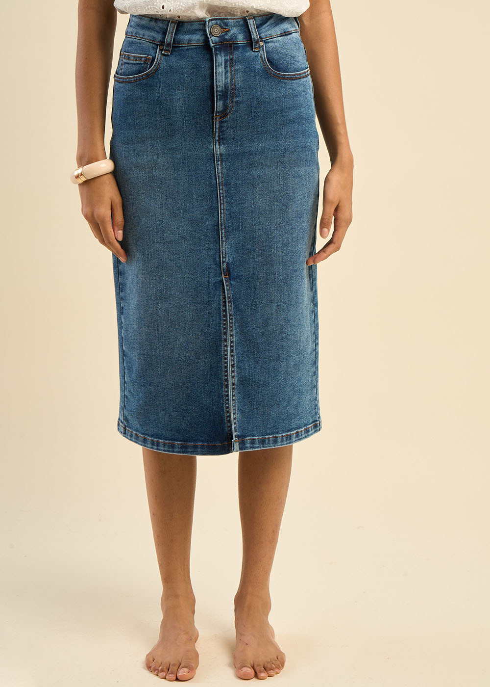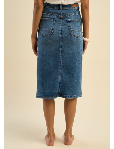 La jupe en jean JAFA midi offre une coupe droite élégante et une longueur mi-mollet parfaite pour un style polyvalent. Avec sa taille à passants, ses poches pratiques et sa fente avant discrète, elle allie confort et fonctionnalité. Portez-la avec un t-shirt et des baskets pour un look casual, ou une blouse et des bottines pour une tenue chic.