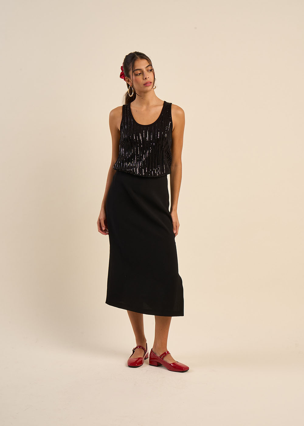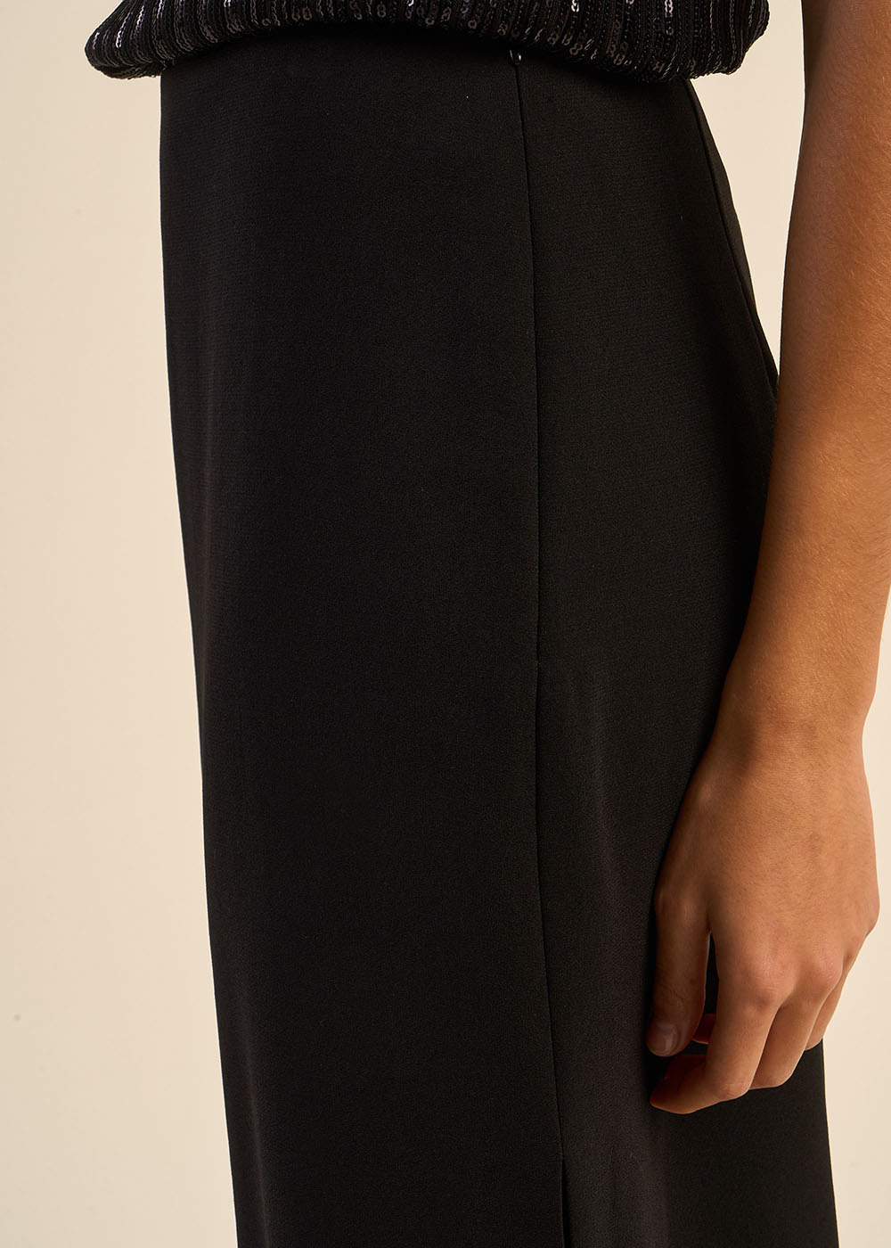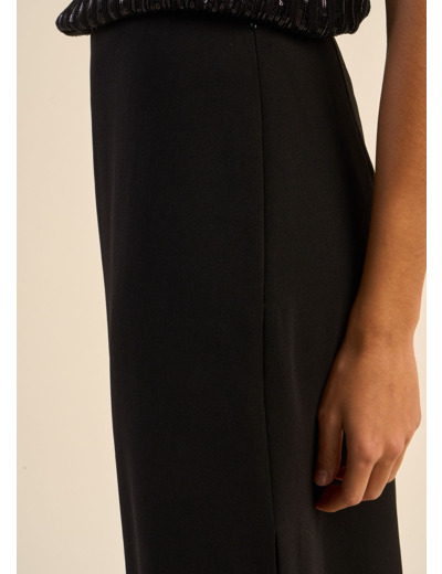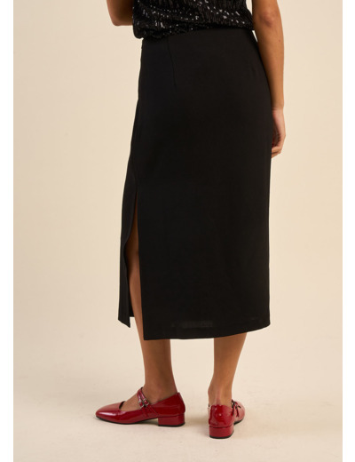 La jupe midi JALIMA en crêpe polyester est fluide et légère, offrant une polyvalence parfaite pour le jour comme pour la nuit. Une fente latérale dévoile subtilement la jambe, tandis qu'un zip invisible garantit une finition soignée. Associez-la à un haut simple pour un style décontracté ou à un top élégant pour une tenue de soirée.