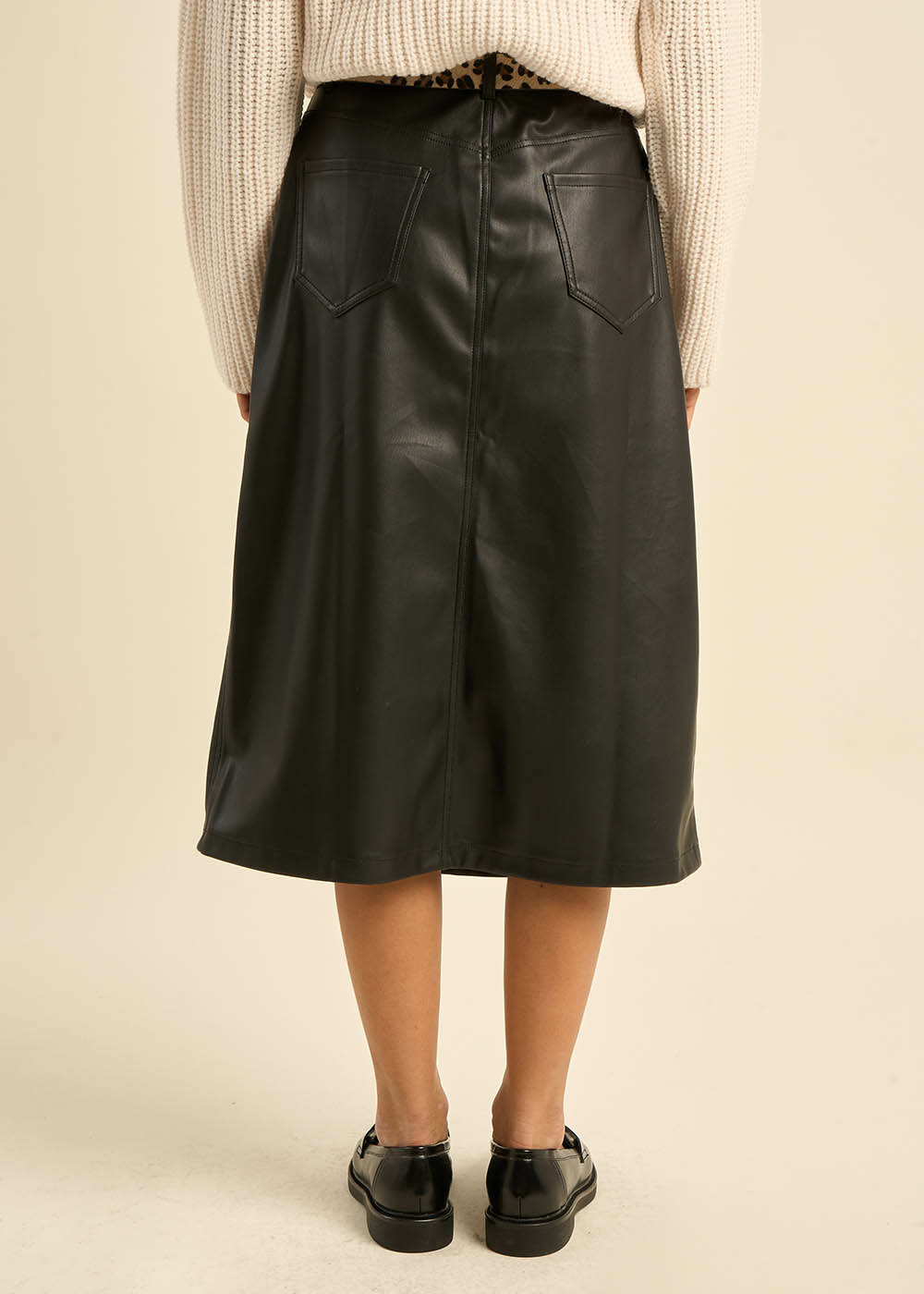 Jupe mi-longue en similicuir