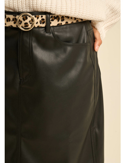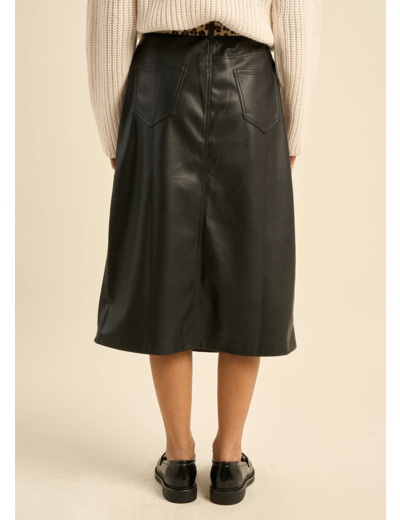 La jupe JULINE, un jeu de contrastes. Sa coupe mi-longue, associée au faux cuir, lui confère une allure rock chic. Les découpes devant et dos, soulignées par des surpiqûres audacieuses, apportent une touche d'originalité. Disponible en noir intemporel ou en chocolat plus doux, elle s'adapte à toutes les personnalités.
