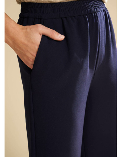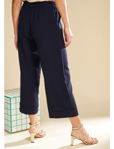 Découvrez l'élégance moderne avec le pantalon PRISTA. Sa taille haute élastiquée sa jambe large de longueur 7/8 et ses revers généreux en bas de jambe créent une silhouette à la fois confortable et chic. Les poches italiennes à l'avant ajoutent une touche pratique et stylée. Associez-le à une blouse légère et des talons hauts pour une tenue sophistiquée qui ne passe pas inaperçue.