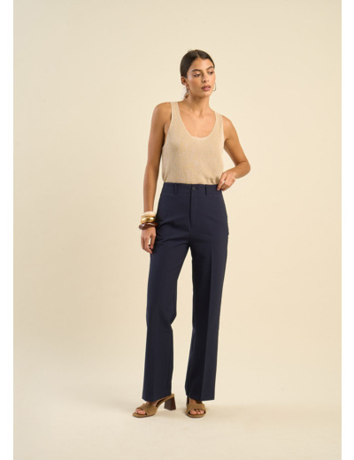 Le pantalon PELAGIE, un écrin de douceur. Sa taille haute et sa jambe large offrent un confort incomparable, tandis que les détails soignés, comme les pinces et les plis, apportent une touche d'élégance. Confectionné dans la même microfibre que la veste VEDELINE, il crée un ensemble harmonieux et raffiné.