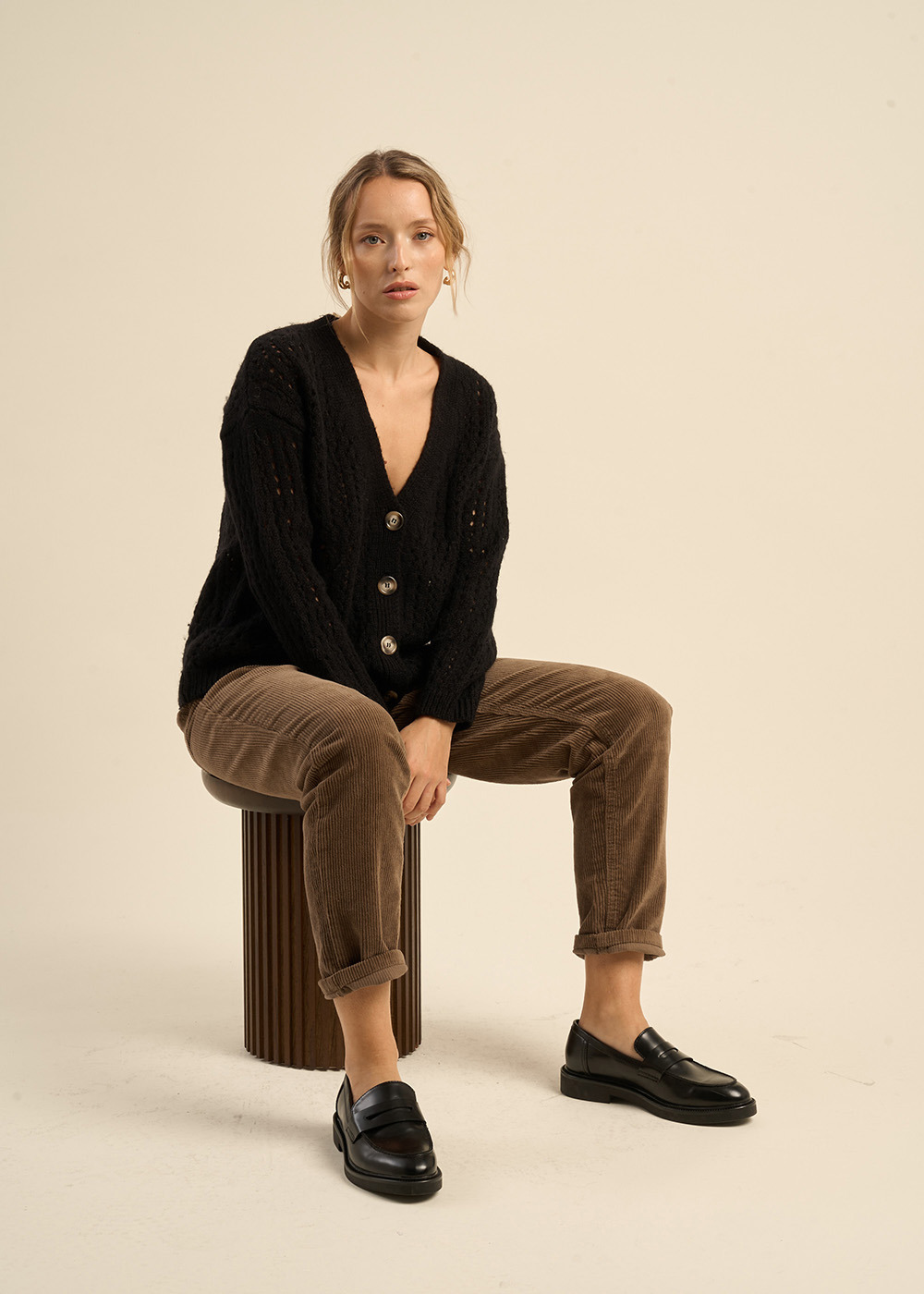 Le pantalon PAVLINA, un incontournable revisité. Son velours côtelé 500 raies, ultra doux, vous enveloppera de confort. Sa coupe boyfriend, empruntée a notre jean iconique BEN, offre une allure décontractée et chic. Avec ses cinq poches, il allie style et praticité.