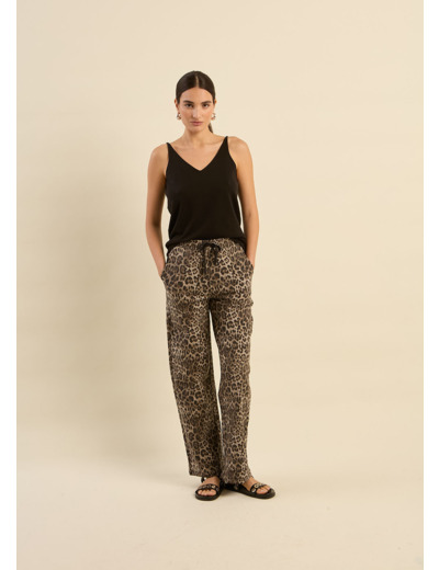 Le pantalon JAGUAR, imprimé de motifs inspirés du jaguar, offre une coupe fluide et élégante, idéale pour allier confort et style. Son design est agrémenté de deux poches pratiques et d'un lien de resserrage à la taille pour un ajustement personnalisé. Ce pantalon allie à la fois allure et fonctionnalité, parfait pour toutes les occasions décontractées ou plus habillées.