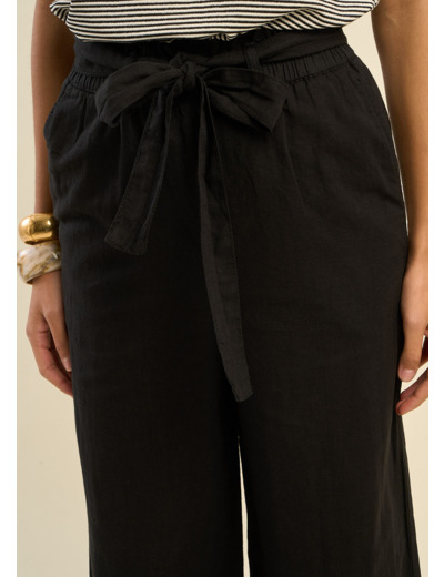 Le pantalon PASTELA est un essentiel de la garde-robe estivale, alliant élégance et confort. Avec sa taille très haute et sa jambe extra-large, il offre une silhouette fluide et allongée. Sa ceinture élastique, accompagnée d’une ceinture à nouer, assure un ajustement parfait tout en ajoutant une touche sophistiquée. Confectionné dans un mélange de coton et de lin, il est à la fois léger et agréable à porter. Polyvalent, il se porte aussi bien en journée avec un t-shirt décontracté qu’en soirée avec une blouse élégante.