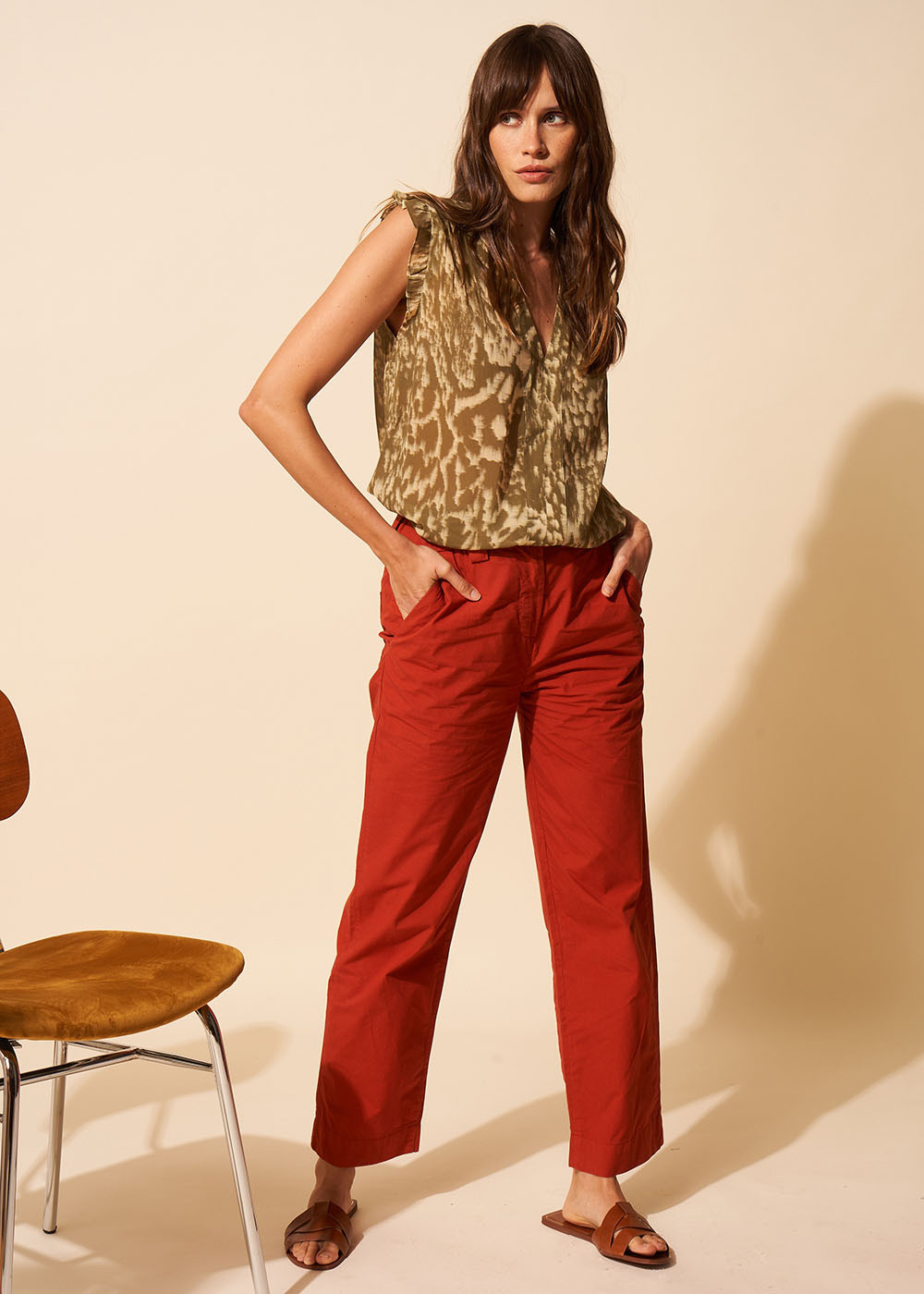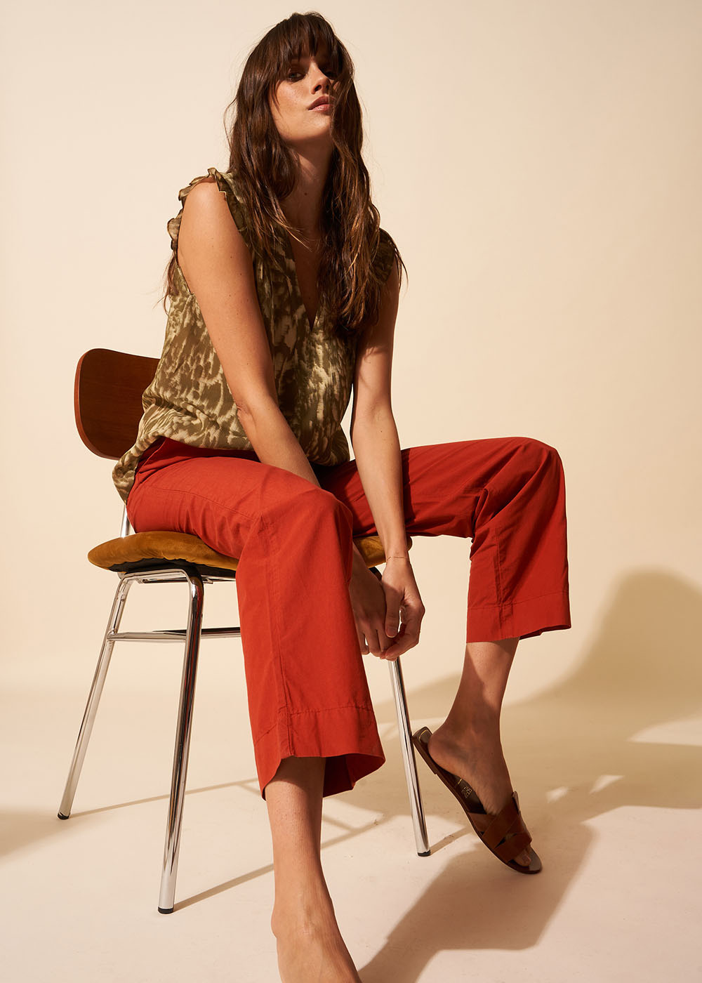 Craquez pour ce joli pantalon à taille haute élastiquée. Avec sa coupe large le PLOFIN est agréable à porter. Celui-ci comporte deux poches italiennes sur le devant et une poche passepoilée au dos. Une fois adopté on ne le lâche plus !