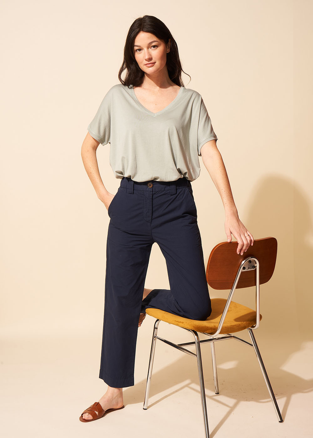 Craquez pour ce joli pantalon à taille haute élastiquée. Avec sa coupe large le PLOFIN est agréable à porter. Celui-ci comporte deux poches italiennes sur le devant et une poche passepoilée au dos. Une fois adopté on ne le lâche plus !