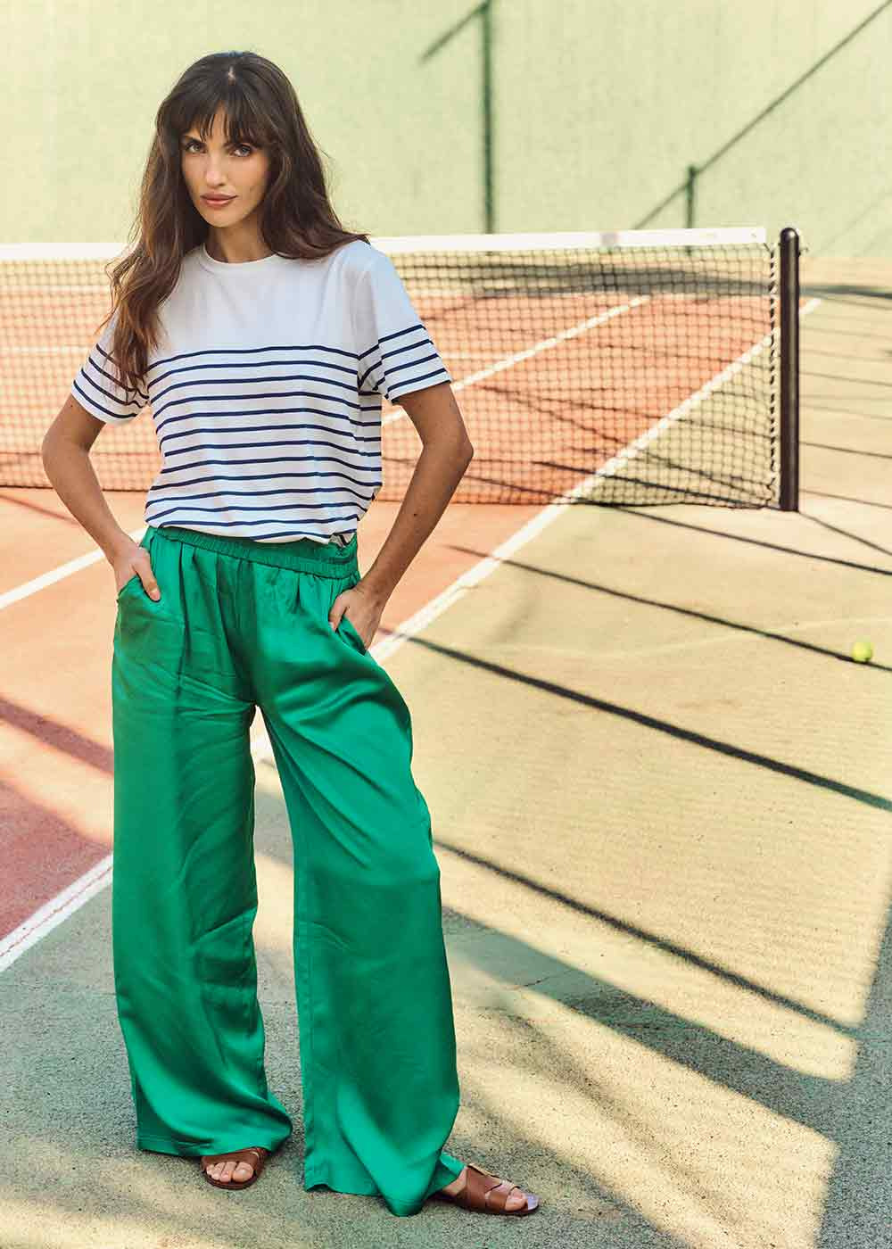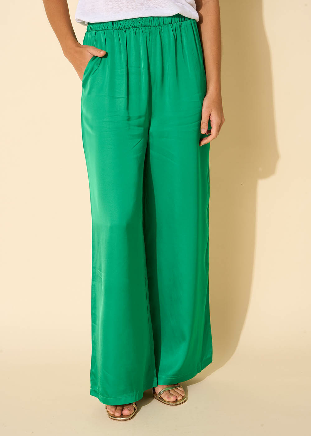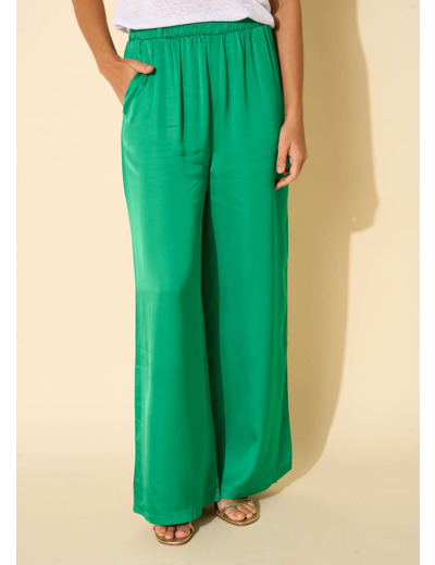 Le pantalon PAROCKY en satin présente une taille haute élastiquée pour un confort optimal avec une jambe large pour une silhouette élégante et fluide. Doté de poches italiennes sur le devant il combine praticité et style pour une tenue sophistiquée et féminine.