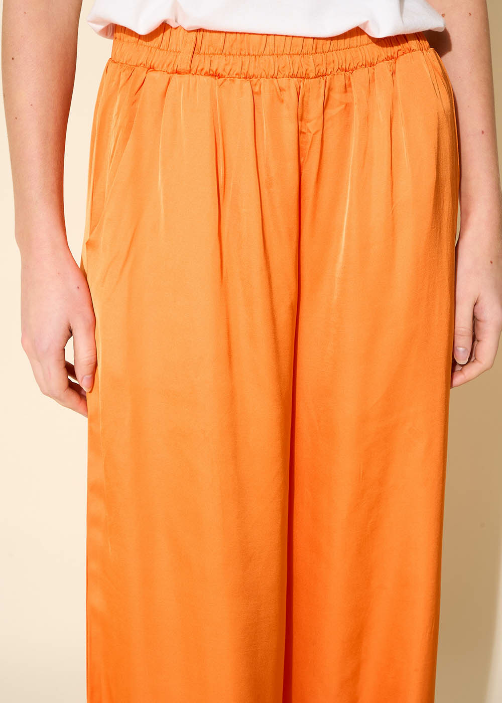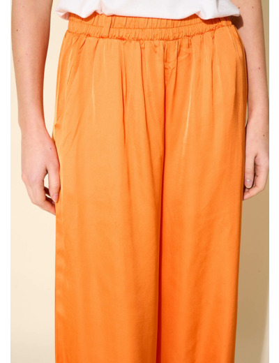 Le pantalon PAROCKY en satin présente une taille haute élastiquée pour un confort optimal avec une jambe large pour une silhouette élégante et fluide. Doté de poches italiennes sur le devant il combine praticité et style pour une tenue sophistiquée et féminine.