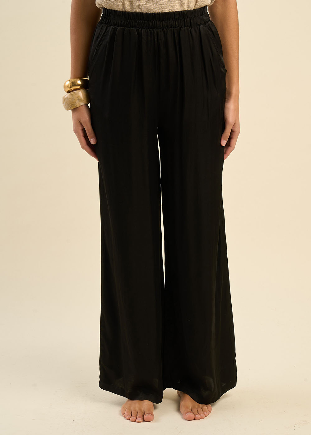 Découvrez notre pantalon PAROCKYX en satin de viscose, conçu pour offrir une silhouette fluide et sophistiquée. Sa taille haute élastiquée assure un ajustement confortable, tandis que sa coupe large apporte une élégance naturelle. Doté de poches italiennes sur le devant, il allie praticité et style. Idéal pour toutes les occasions, ce pantalon devient rapidement une pièce essentielle de votre garde-robe.