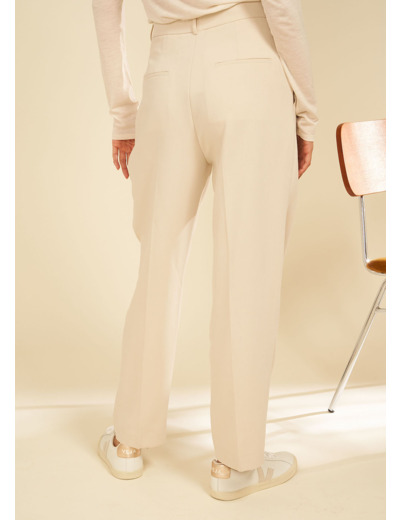 Le pantalon de tailleur PASALTA est une pièce élégante qui se caractérise par sa coupe carotte flatteuse. Il présente une taille haute et est doté de pinces à la taille, ce qui ajoute une touche de sophistication à votre tenue. Les poches italiennes offrent à la fois fonctionnalité et style. Ce pantalon est idéal pour être porté avec un pull uni pour un look chic et élégant. Sa coupe carotte mettra en valeur votre silhouette tout en vous offrant un confort optimal. Une option parfaite pour des occasions formelles ou pour ajouter une note d'élégance à votre tenue quotidienne.