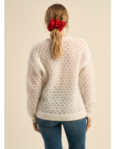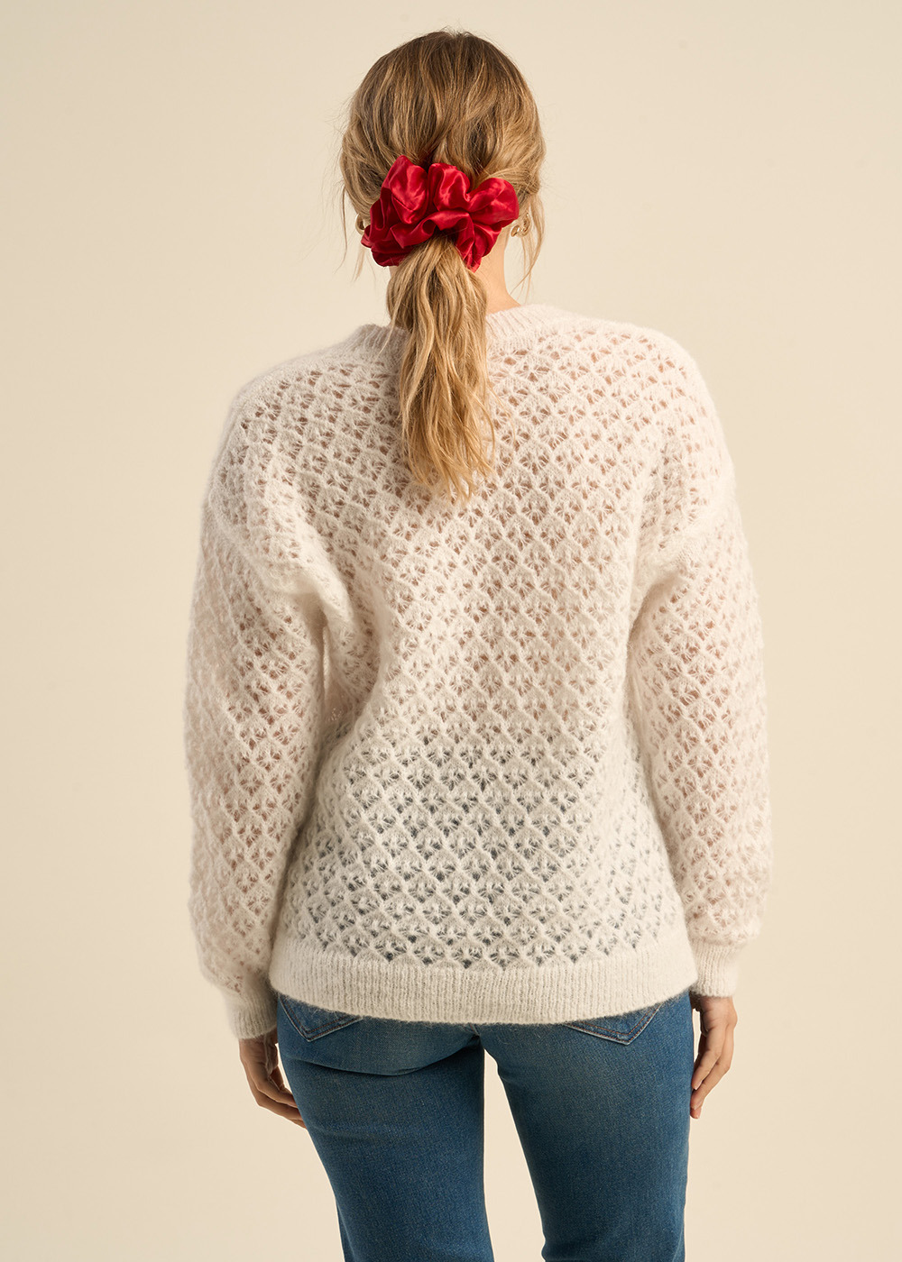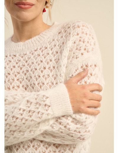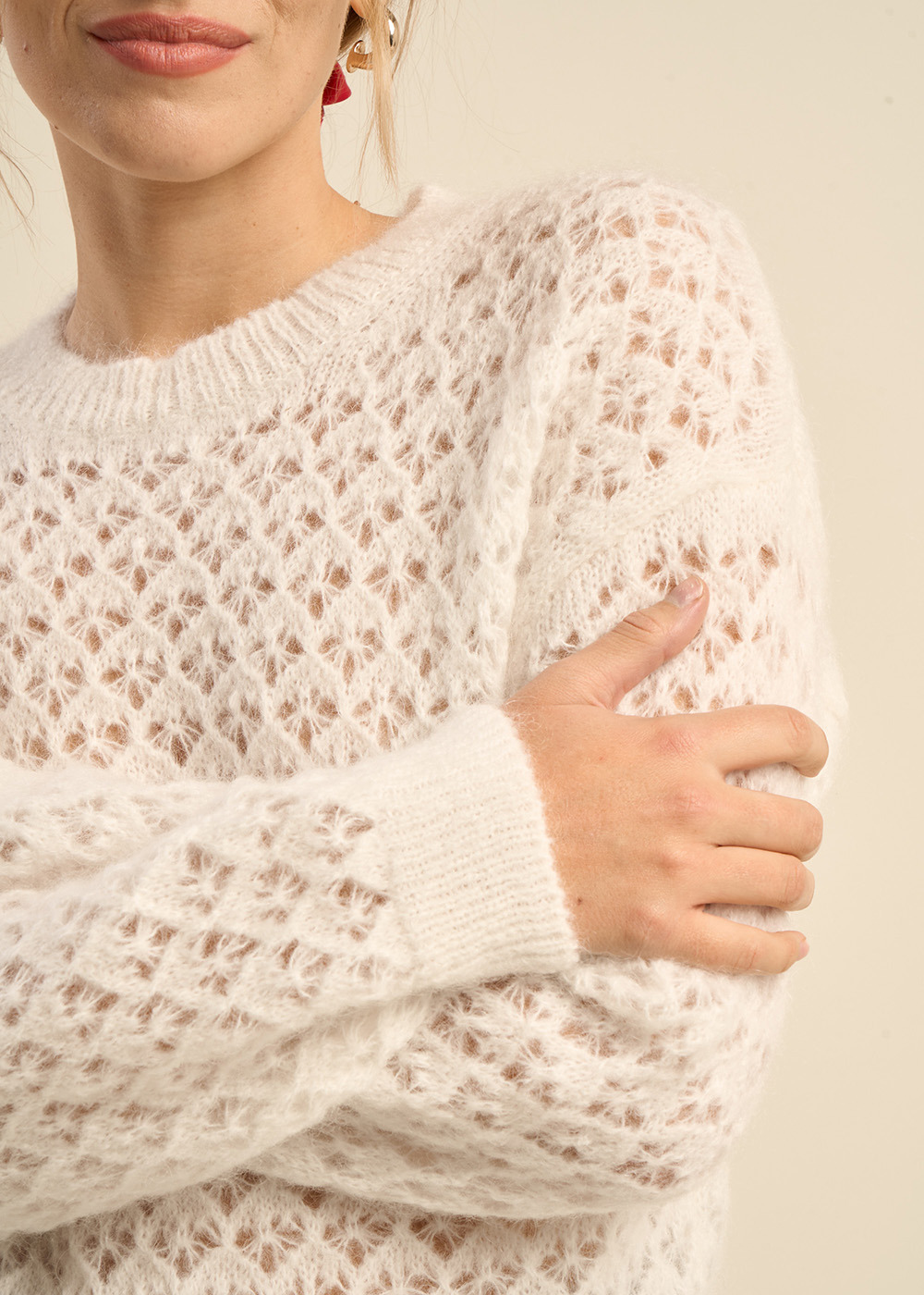 Le pull Melchia incarne l’élégance décontractée avec son col rond et sa maille fantaisie délicate. Conçu avec soin, il présente des manches longues qui enveloppent avec douceur, offrant chaleur et confort pour les journées fraîches. Les bords côtes, subtilement intégrés au col et aux manches, ajoutent une touche raffinée et structurée. Ce pull est idéal pour un look quotidien chic, se mariant parfaitement avec un jean ajusté ou une jupe fluide.