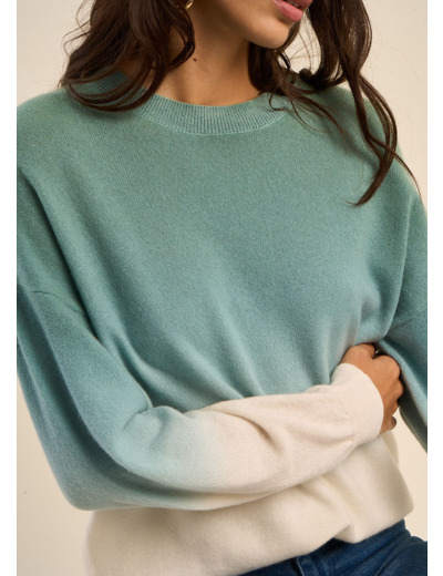MONDOUDY, le pull en cachemire qui allie luxe et originalité. Son coloris tie-dye, marine ou amande, lui confère un aspect unique. L'encolure ronde et les épaules tombantes lui donnent une allure décontractée et élégante. La douceur du cachemire vous enveloppera de confort.