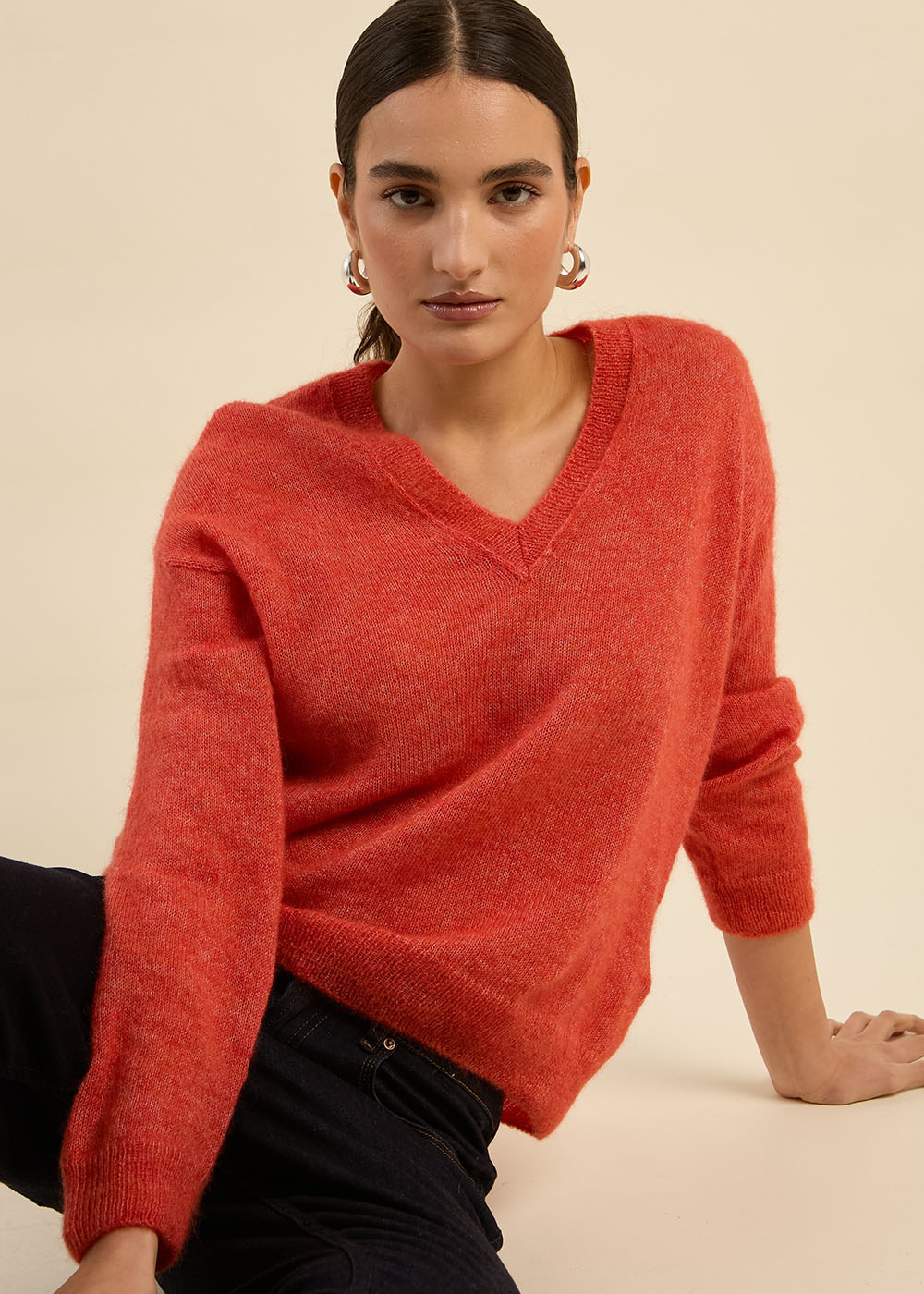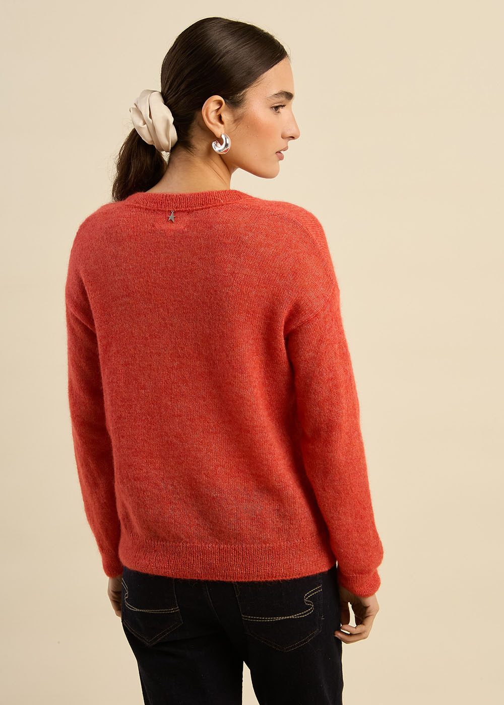 Le pull MARTINY est conçu pour offrir un mélange parfait de chaleur et de confort. Avec son col en V, ses épaules tombantes et sa forme ample, il apporte une touche de décontraction élégante à votre garde-robe. Ce modèle en moyenne jauge, aux manches longues et à l'effet mohair, se distingue par son tricotage doux et enveloppant. Portez-le avec un pantalon de tailleur pour une allure sophistiquée ou associez-le à un jean pour un look décontracté et confortable.