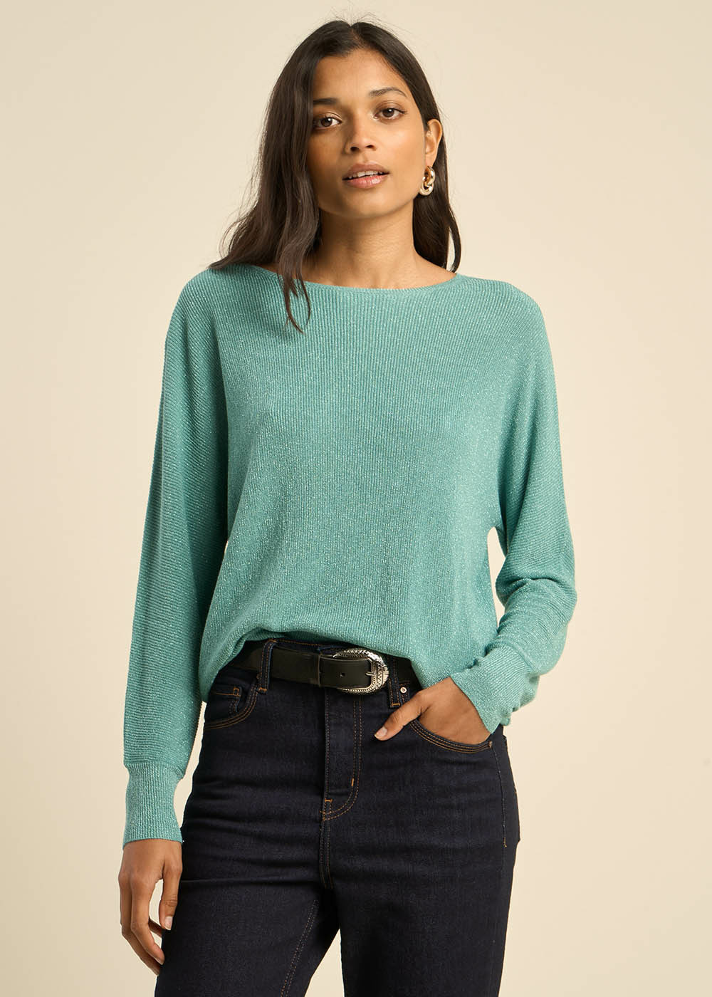 Découvrez le pull MACARENY en maille file lurex, une pièce étincelante qui vous séduira par son col bateau et ses manches chauve-souris. Sa texture côtelée en lurex ajoute une touche de brillance et de modernité à votre tenue. Parfait pour les occasions spéciales ou pour une touche d'éclat au quotidien, ce pull vous garantit confort et élégance.