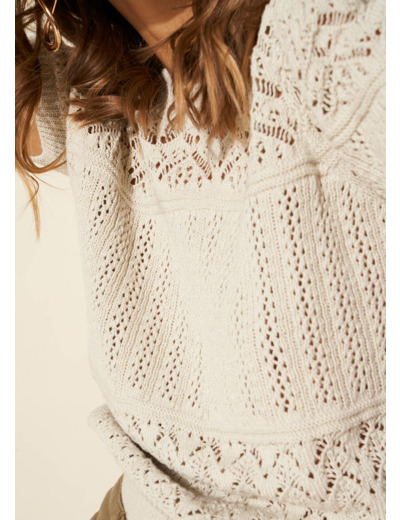Le pull MADALOU à manches courtes est doté d'un col rond. Confectionné en coton doux il offre un confort exceptionnel tandis que son tricotage fantaisie en bandeaux apporte une touche de modernité à votre tenue. Un essentiel tendance qui allie confort et élégance avec brio.