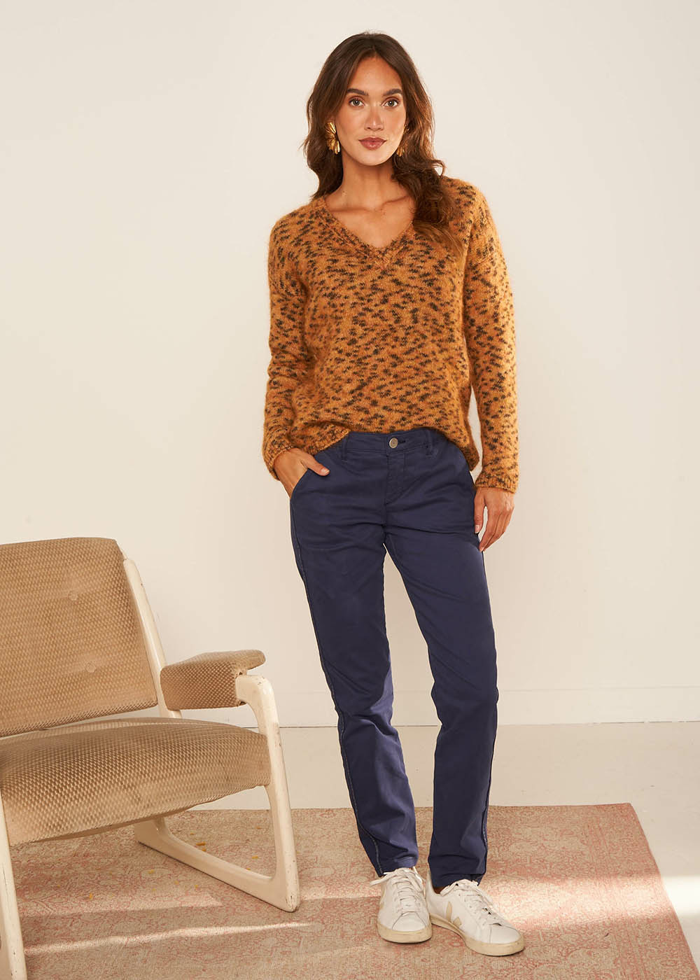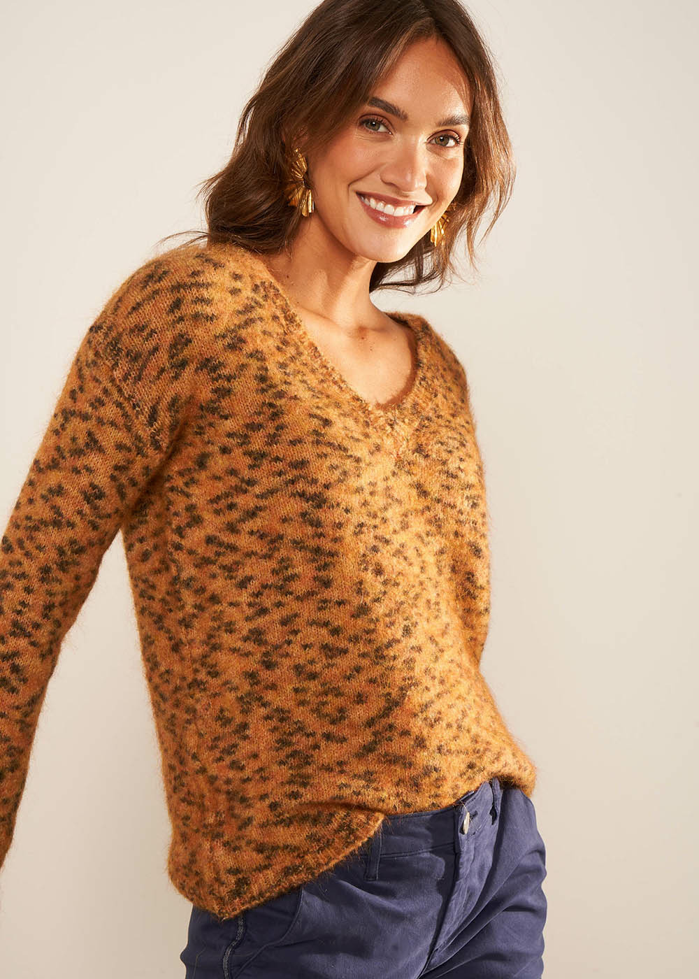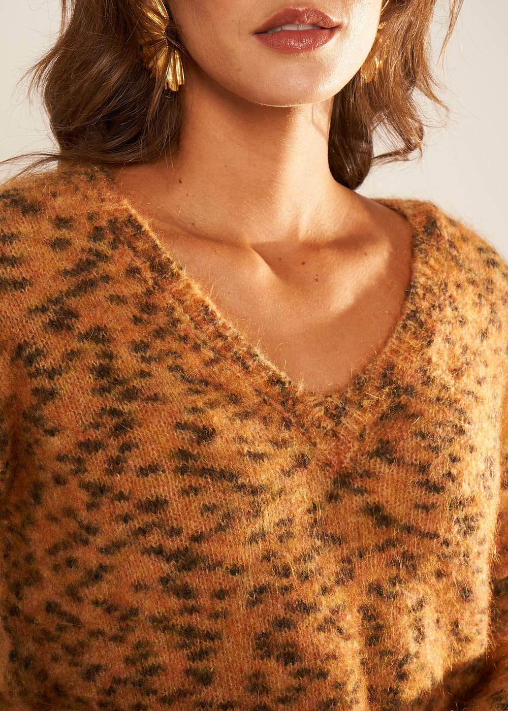 Ce pull MADELINE à col en V avec fil à effet animal est un choix audacieux pour ajouter une touche de glamour à votre garde-robe. Que ce soit pour une soirée spéciale ou pour rehausser un look décontracté il offre une combinaison intrigante de style classique et de motifs audacieux. Ce pull offre un toucher doux et confortable garantissant un confort optimal tout au long de la journée.