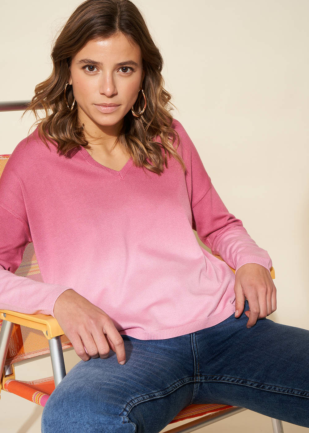 Le pull MAUREENA se caractérise par son procédé de teinture profonde. Il est doté d'un col en V et de manches longues. Associez-le à votre jean en denim préféré pour un look complet.