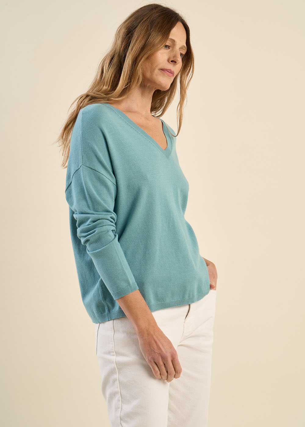 MARSENOU, le pull intemporel qui allie simplicité et modernité. Avec sa coupe ample et ses emmanchures tombantes, ce pull offre une allure décontractée tout en restant élégante. Son col V flatteur et sa maille en fine jauge en font une pièce raffinée et facile à porter. Confectionné en viscose, il garantit confort et douceur au quotidien. Son design uni permet de l’associer à toutes vos tenues, pour un style chic et minimaliste.