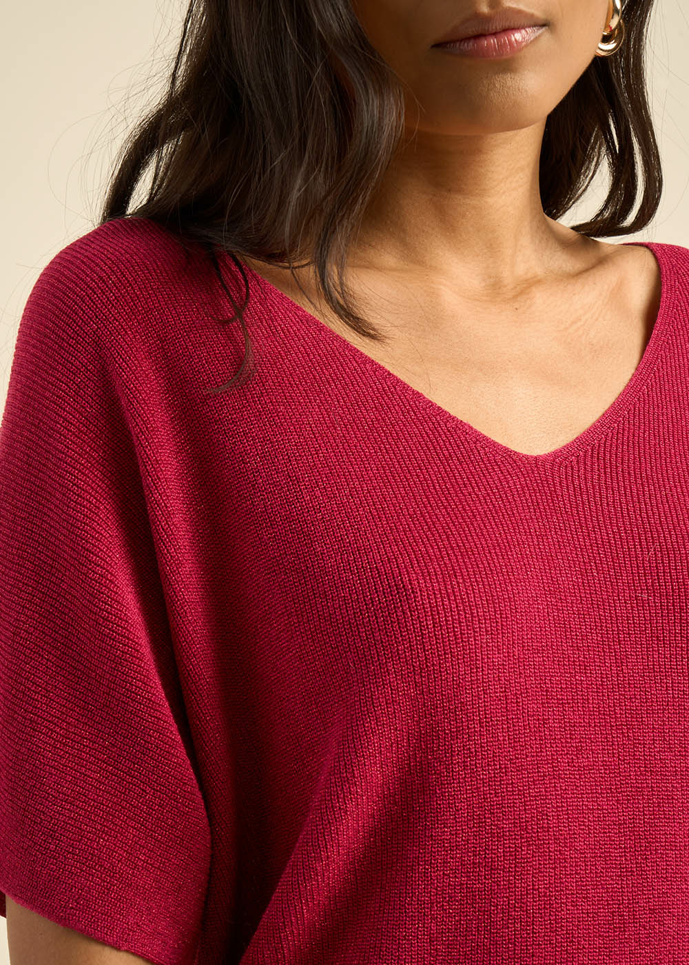 Le pull en maille fine MIKOLAYX est un incontournable dans la garde-robe. Avec ses manches courtes et son col en V il se distingue par un fil lurex qui ajoute une touche d'élégance à la pièce.