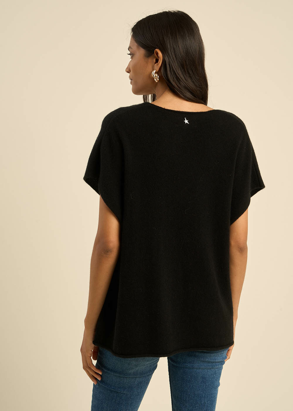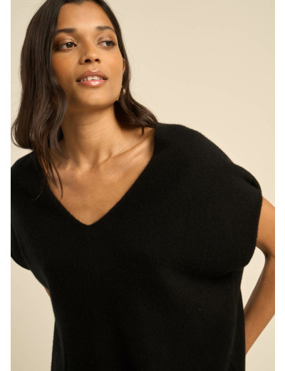 Le pull MAELLO allie élégance moderne et confort absolu. Avec sa coupe ample et ses manches courtes sans emmanchures, il offre une allure fluide et contemporaine, adaptée à toutes les silhouettes. Son col V délicat sublime le port de tête avec raffinement. Confectionné en 100 % cachemire et tricoté en jersey fin et léger, il garantit douceur, qualité et durabilité. Associez-le à votre jean préféré pour un look élégant et confortable.