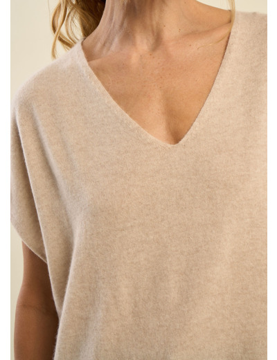 Le pull MAELLO allie élégance moderne et confort absolu. Avec sa coupe ample et ses manches courtes sans emmanchures, il offre une allure fluide et contemporaine, adaptée à toutes les silhouettes. Son col V délicat sublime le port de tête avec raffinement. Confectionné en 100 % cachemire et tricoté en jersey fin et léger, il garantit douceur, qualité et durabilité. Associez-le à votre jean préféré pour un look élégant et confortable.