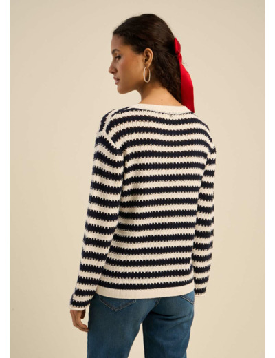 Le pull MACEO, confectionné en 100 % coton, incarne l'élégance décontractée avec sa coupe droite et son motif marinière intemporel. Son col rond, orné d'une finition en bord-côte, et son jeu de points subtil apportent une touche de sophistication. Idéal pour les journées fraîches, ce pull combine confort et style avec brio.