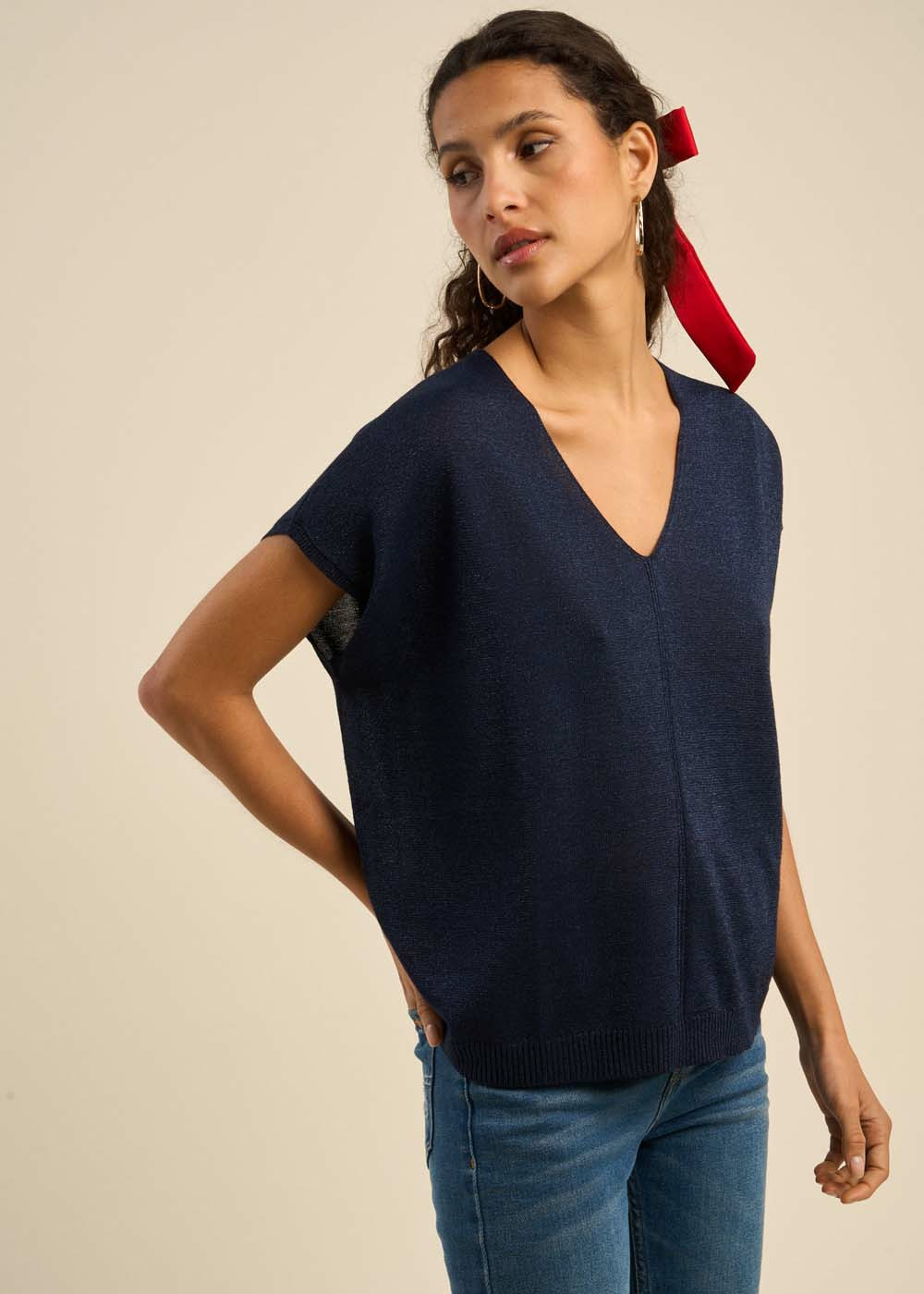 Découvrez notre pull MARGARRET, une pièce moderne et élégante qui saura sublimer votre garde-robe. Avec sa coupe droite large et son col en V, ce pull allie confort et style contemporain. Sa fibre métallisée apporte un effet brillant subtil. Un pull idéal pour apporter une touche de brillance et de modernité à vos tenues quotidiennes.