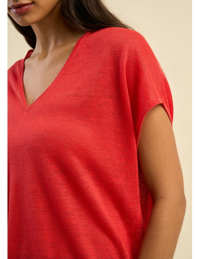 Adoptez le style estival décontracté du pull MAELLAEY ! Avec son col en V élégant ses manches courtes sans emmanchures et son tricot en lin léger ce pull offre un look décontracté parfait pour les journées chaudes. La texture en lin apporte une touche de raffinement décontracté à votre garde-robe estivale. Un choix idéal pour rester élégant même par temps chaud.