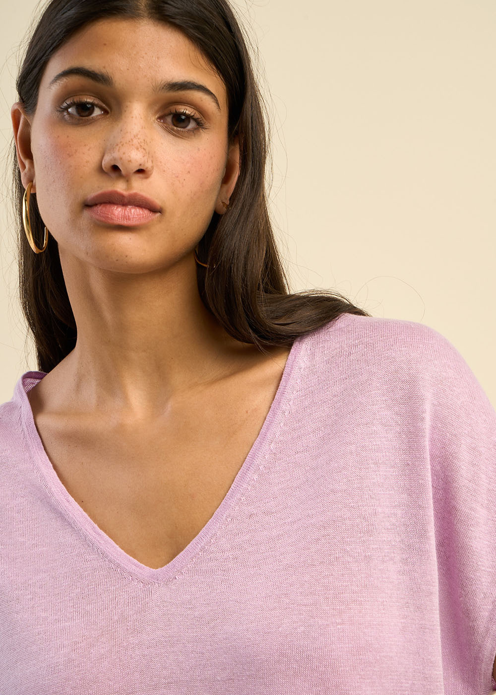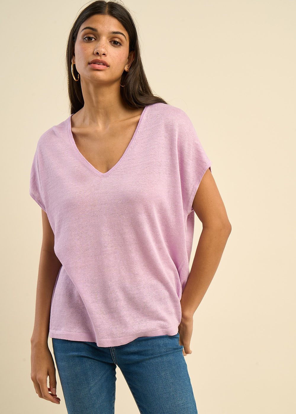 Adoptez le style estival décontracté du pull MAELLAEY ! Avec son col en V élégant ses manches courtes sans emmanchures et son tricot en lin léger ce pull offre un look décontracté parfait pour les journées chaudes. La texture en lin apporte une touche de raffinement décontracté à votre garde-robe estivale. Un choix idéal pour rester élégant même par temps chaud.