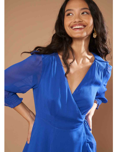 La ROKIMA est conçue pour vous offrir confort et élégance. Son décolleté cache-coeur mettra en valeur votre féminité tandis que les manches longues avec leur bas smocké ajoutent une touche de sophistication.