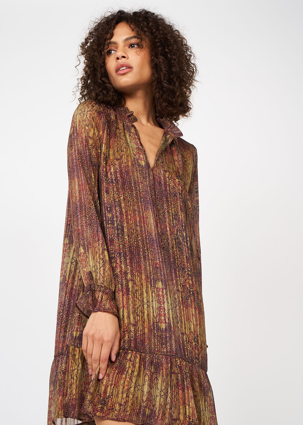 Découvrez notre robe courte RANMA à imprimé ! Sa coupe ample ses manches élastiquées et ses volants sont les détails qui nous font craquer. À porter avec le col ouvert ou resserré grâce aux liens situés au niveau du cou cette pièce s'adapte à toutes les situations.