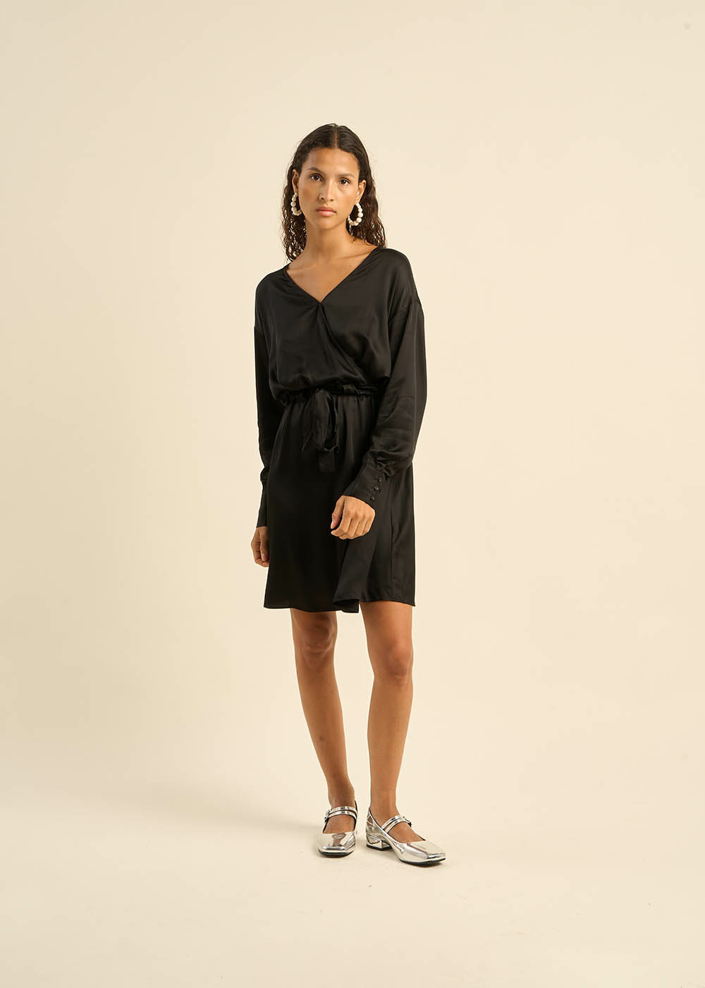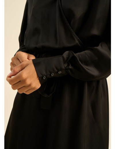 La robe courte RAOBI, votre alliée pour les soirées. Son satin de viscose fluide et soyeux, associé à une coupe élégante, en fait une pièce idéale pour les occasions spéciales. La ceinture à nouer souligne la taille et crée une silhouette féminine. L'ouverture dans le dos apporte une touche de séduction.