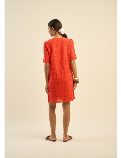 Laissez-vous séduire par notre robe RODEKA, une pièce en broderie anglaise qui allie charme et élégance. Son col V flatteur met en valeur le décolleté, tandis que ses manches courtes papillon offrent une sensation de légèreté. Sa coupe droite et fluide assure un tombé naturel et un confort absolu. Les finitions festonnées sur les manches et le bas de la robe ajoutent une touche romantique et sophistiquée, parfaite pour les beaux jours.
