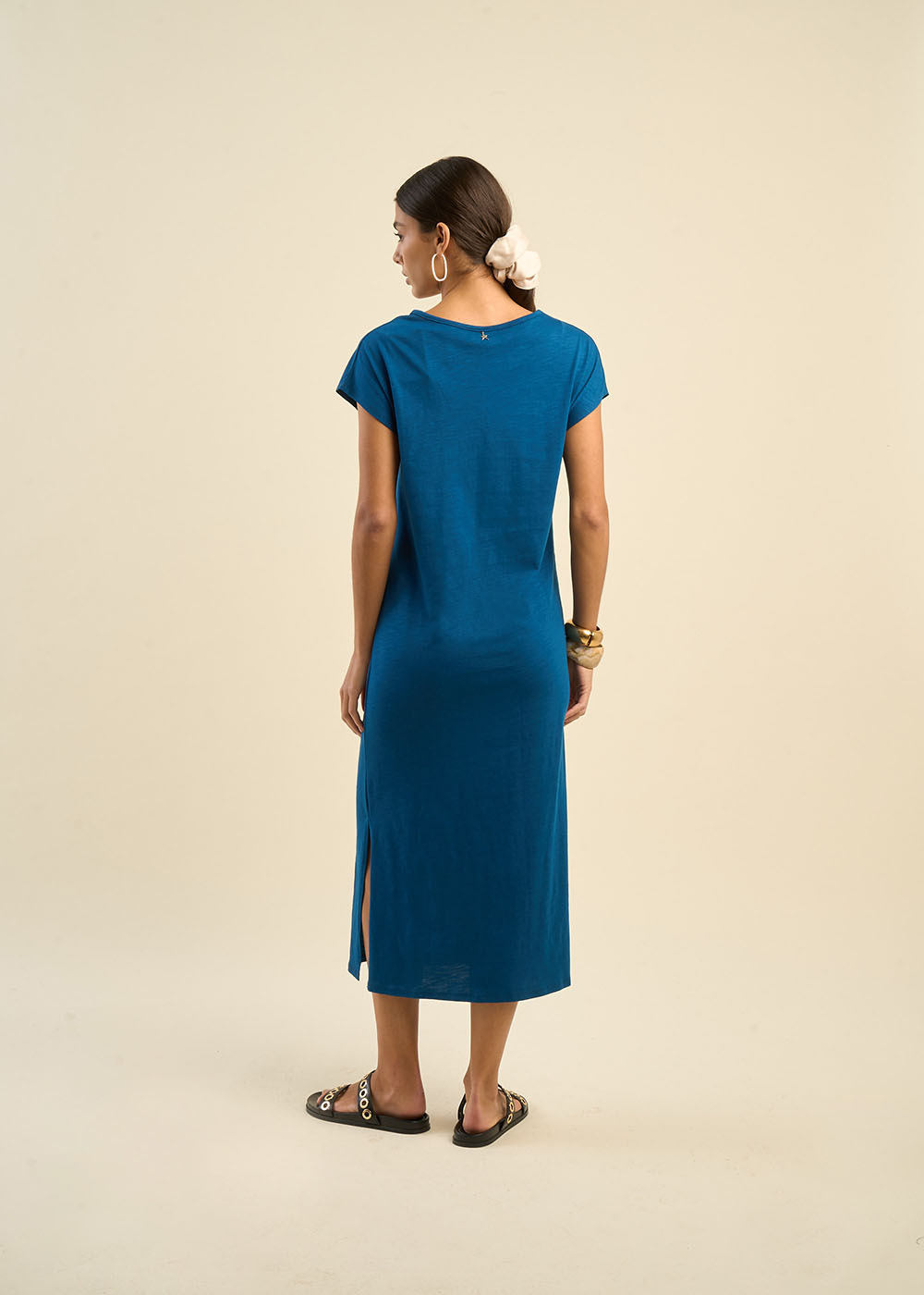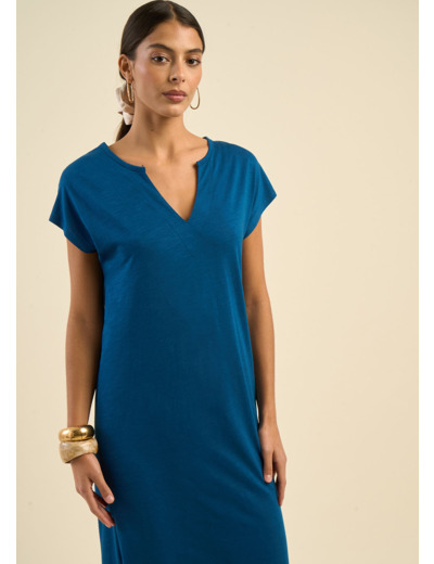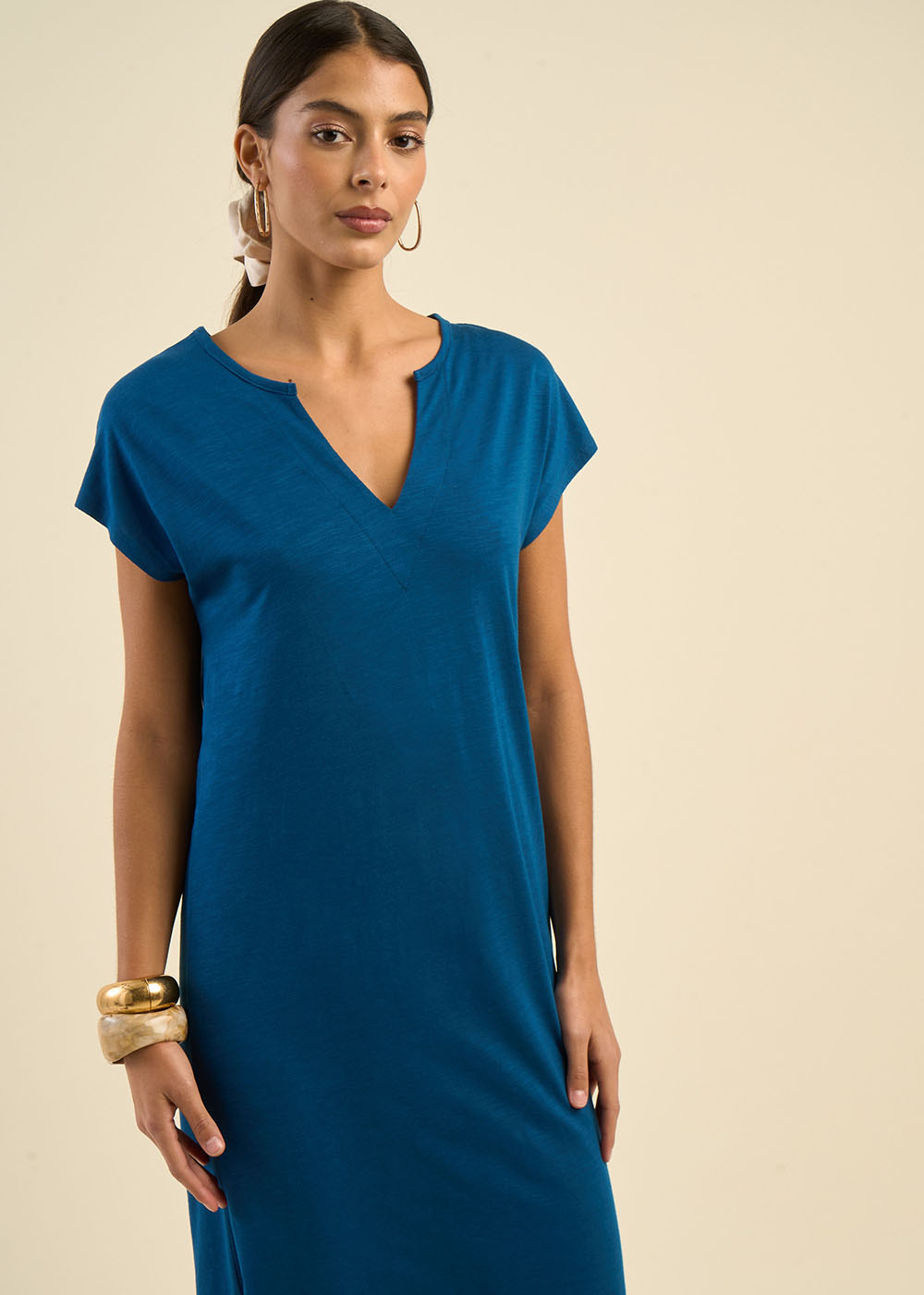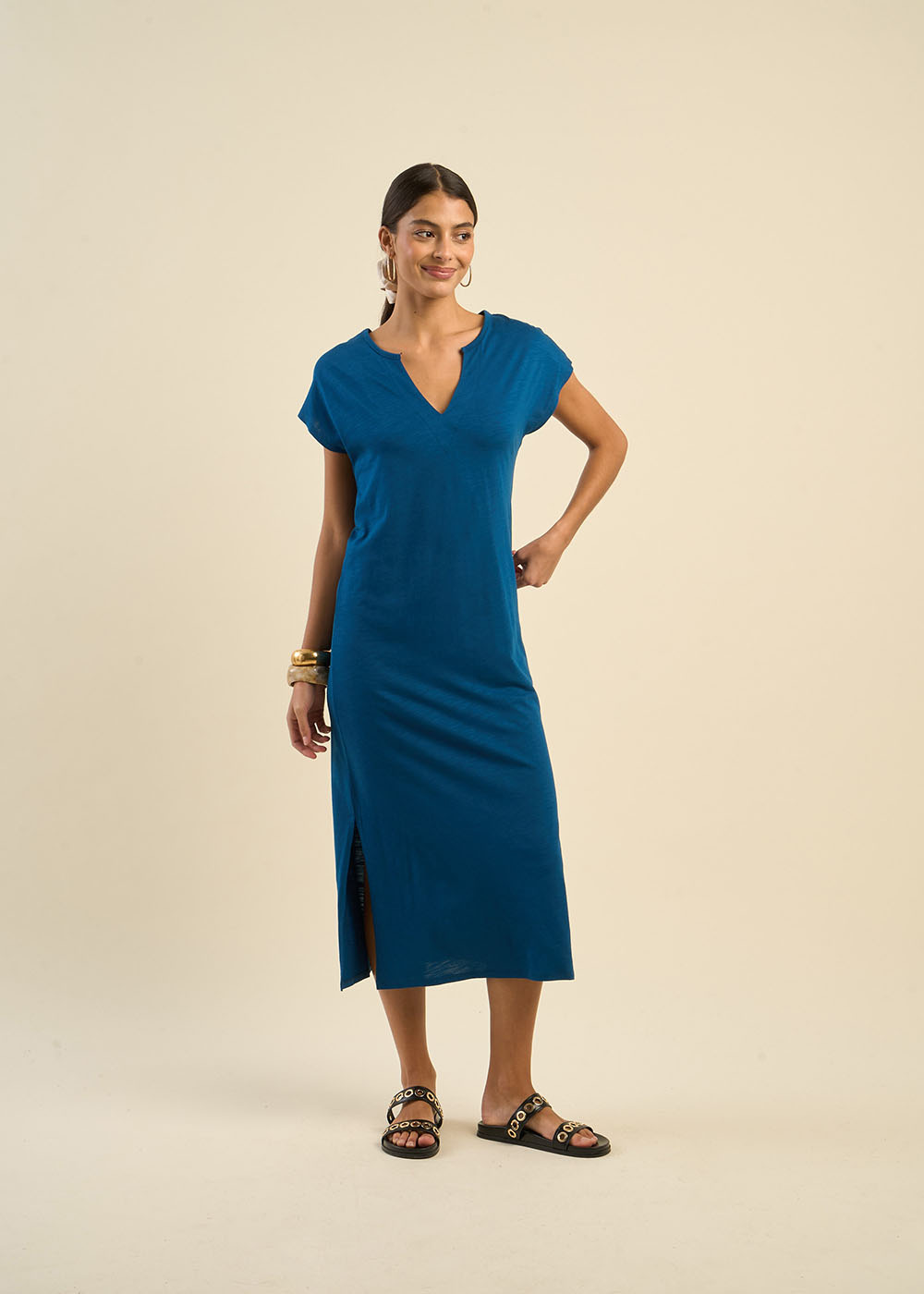 La robe midi ROCYLA incarne l’élégance minimaliste avec sa coupe droite et son design épuré. Confectionnée en coton modal slub, elle se distingue par sa texture légèrement flammée, apportant une touche naturelle et sophistiquée. Son col tunisien ajoute une note authentique, tandis que sa fente sur le côté offre une liberté de mouvement subtile. Sans manches, elle est idéale pour les journées estivales, garantissant confort et légèreté. Son mélange de coton et de modal assure une respirabilité optimale, une douceur durable et une excellente résistance, faisant de cette robe un basique incontournable de la garde-robe d’été.
