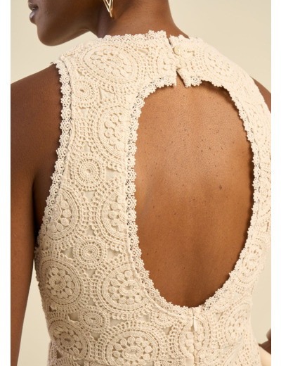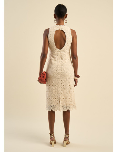 La robe Colette est la pièce maîtresse idéale pour briller lors d’un événement important. Elle allie élégance intemporelle et confort naturel, grâce à sa somptueuse dentelle de guipure en coton.