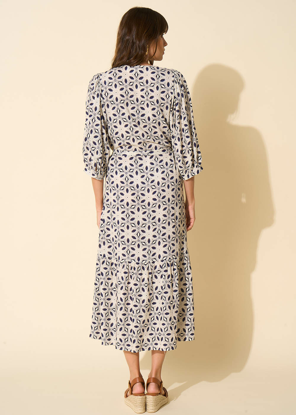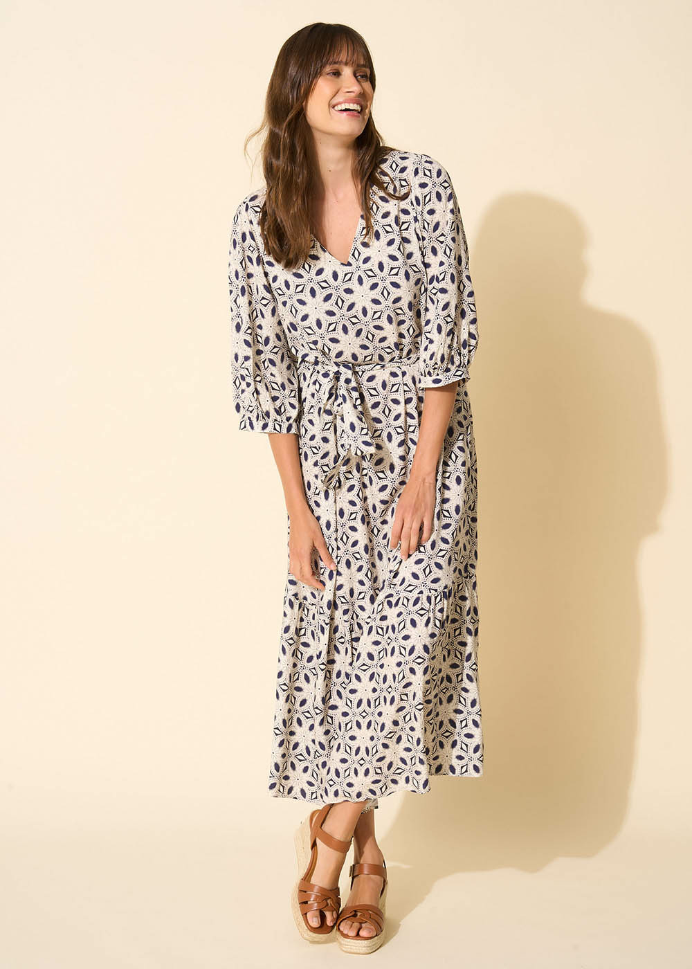La robe longue RAGADIR présente un imprimé unique, avec un col en V et des manches courtes bouffantes. Elle est dotée d'une ceinture ajustable à la taille. Complétez votre tenue en l'associant à une paire d'espadrilles à plateforme.